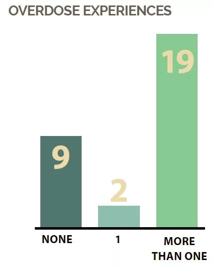 This graphic shows how many of the thirty opioid users interviewed for the report have overdosed.