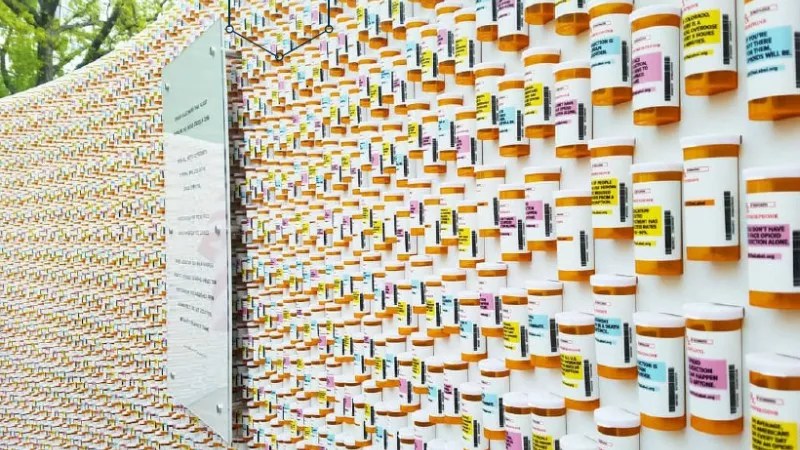 A photo depicting a display of prescription bottles included in the Denver Opioid Response Strategic Plan.