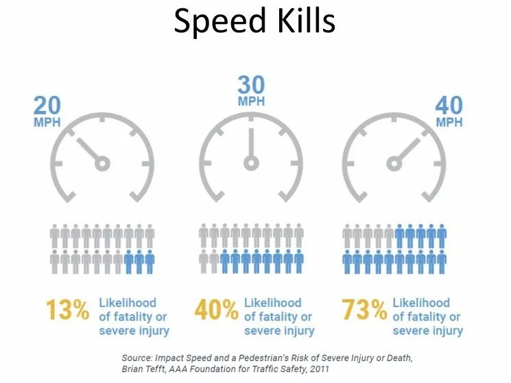 “Even five miles per hour can make a big difference if there’s a crash between a car and a person,” van Heuven says. “It can make the difference between a person being seriously injured or it being a lot worse.”