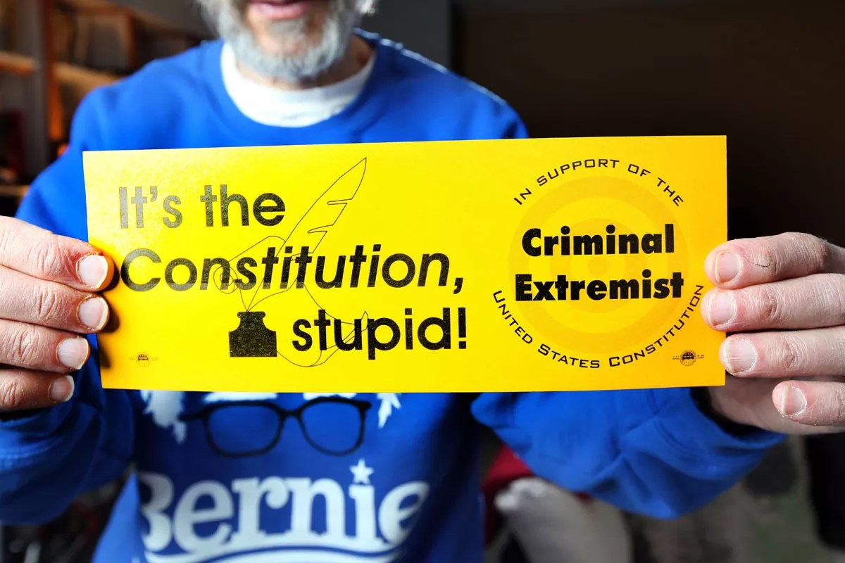 The Cohens even made satirical bumperstickers that say “Criminal Extremist.” They still have some of them at their home.