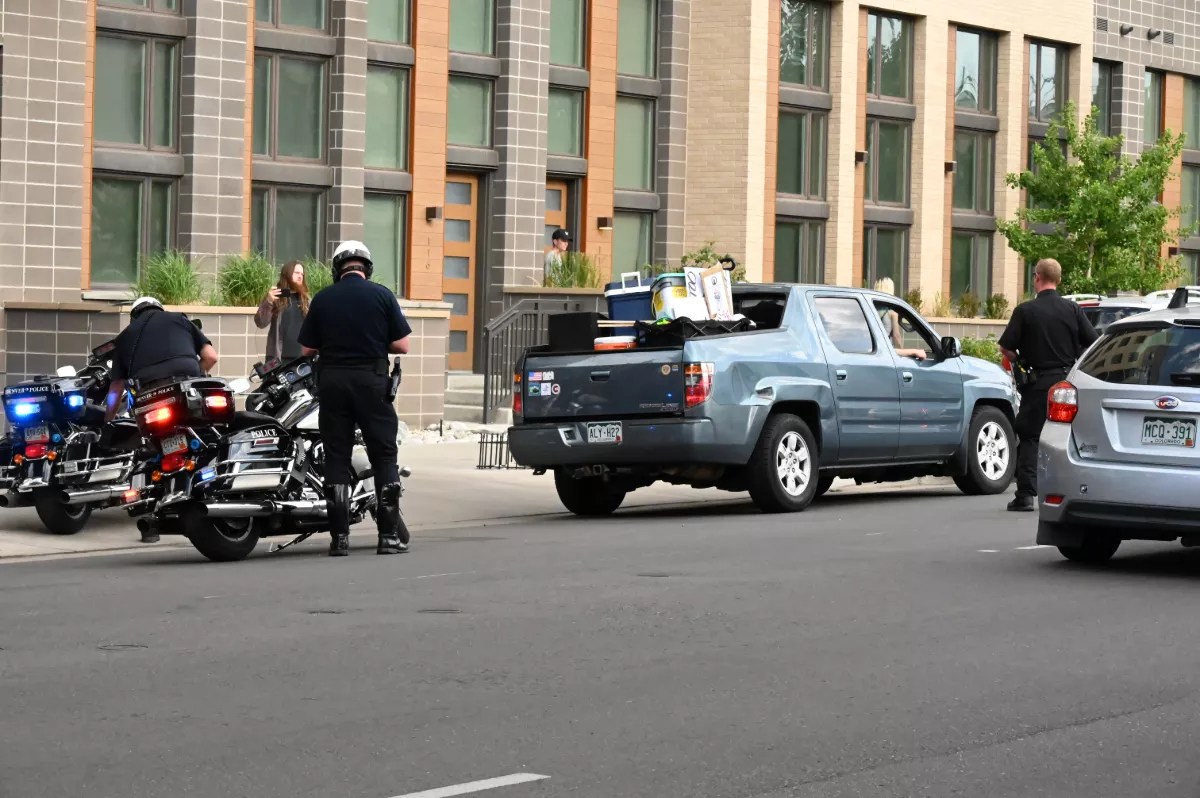 According to witnesses, one officer smelled a cup found in the car and poured it out during the search. DPD later clarified that the Ridgeline was pulled over for an expired license plate and passengers who were “filling containers that appeared to be similar to a weed sprayer with an unknown liquid.” Officers appeared to let the car go after a lengthy search, and DPD confirmed the liquid was not hazardous.