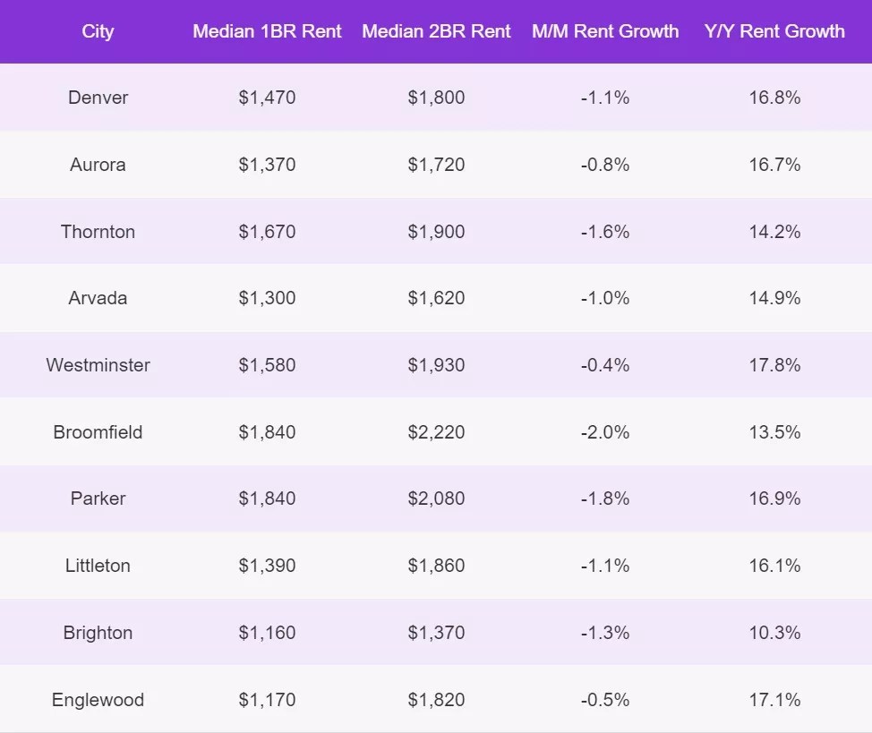 In December, the median price for a one-bedroom apartment in Denver landed at $1,470, with the two-bedroom median at $1,820. Both numbers are $20 lower than in November.