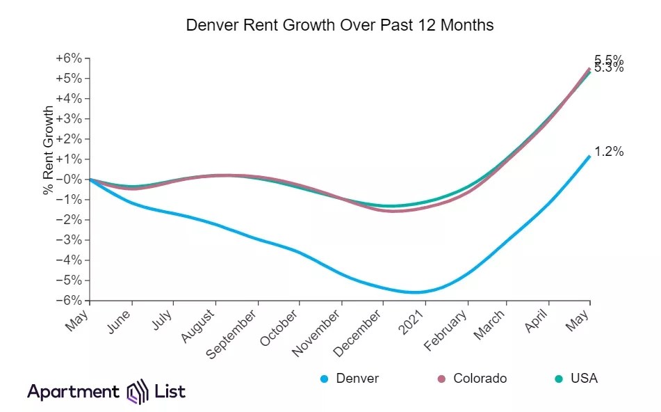 This graphic shows what’s been happening to Denver rent since May 2020, around the time shutdown orders related to COVID-19 were lifted: