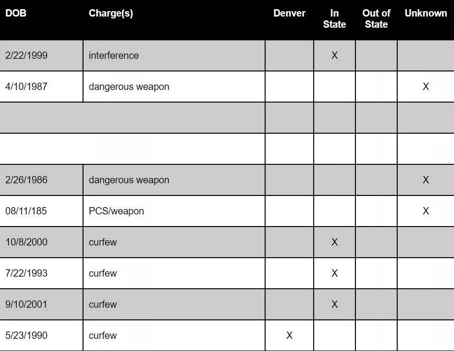 FRIDAY, MAY 29 Denver Police Department Denver Police Department SATURDAY, MAY 30 Denver Police Department Denver Police Department Denver Police Department Denver Police Department Denver Police Department Denver Police Department Denver Police Department Denver Police Department SUNDAY, MAY 31 Denver Police Department Denver Police Department Denver Police Department Denver Police Department Denver Police Department Denver Police Department Denver Police Department Denver Police Department Denver Police Department Denver Police Department Denver Police Department Denver Police Department Denver Police Department Denver Police Department Denver Police Department
