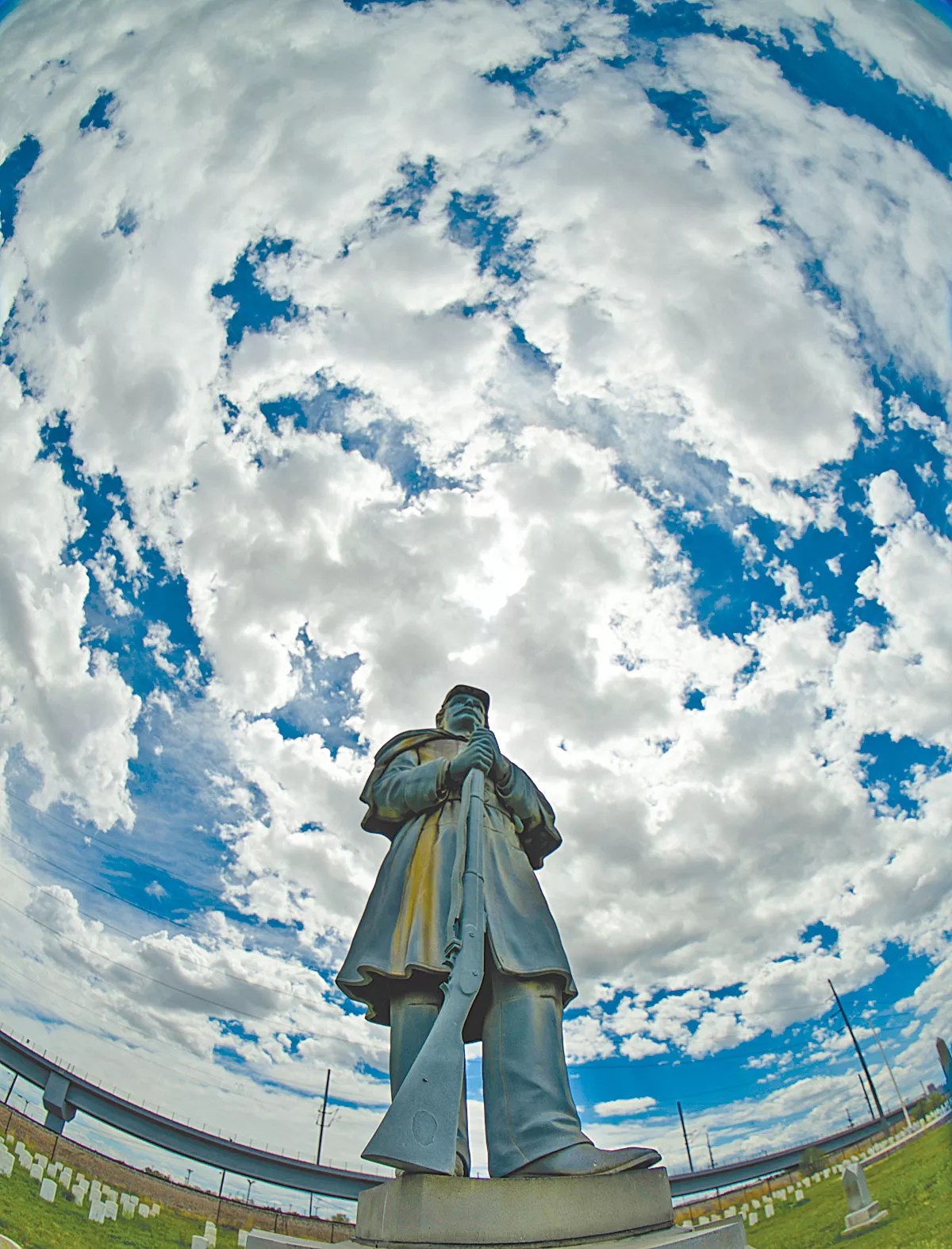 A statue guards the graves of Union soldiers in the section devoted to the Grand Army of the Republic.