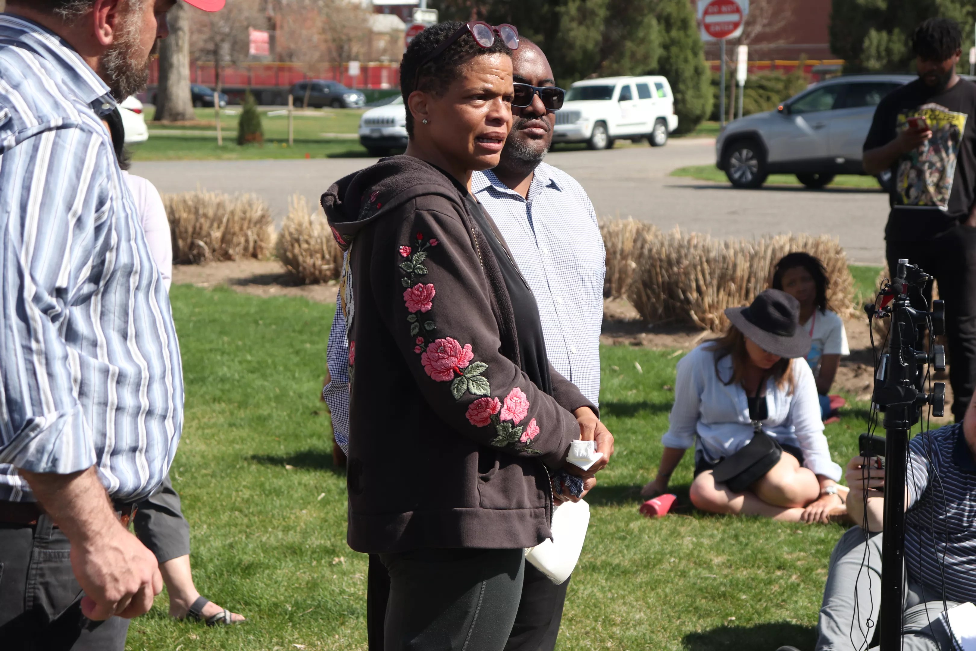 The press conference was hosted by the Parents – Safety Advocacy Group (P-SAG), which formed after the March 22 shooting in order to keep the pressure on the DPS to boost school safety. The group hosts meetings every Monday at East, including one on April 24 before the after-hours thefts occurred.