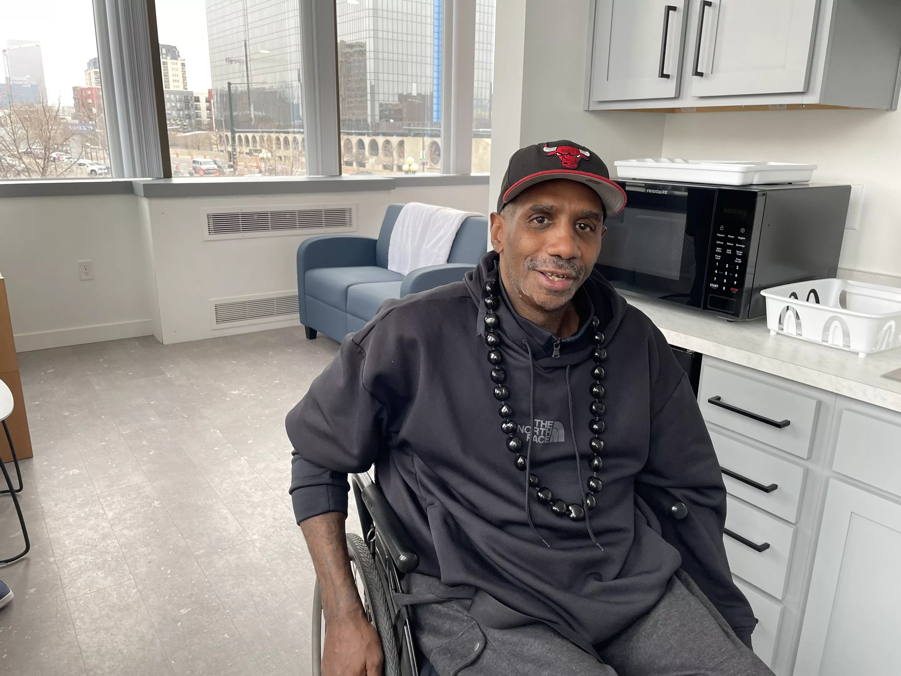 Rashid Sayles was one of the first to move into a Denver Health space; he’s recovering from a gunshot wound. His goal is to learn to walk again, as he discovered that using a wheelchair while homeless made him “prey,” he says.