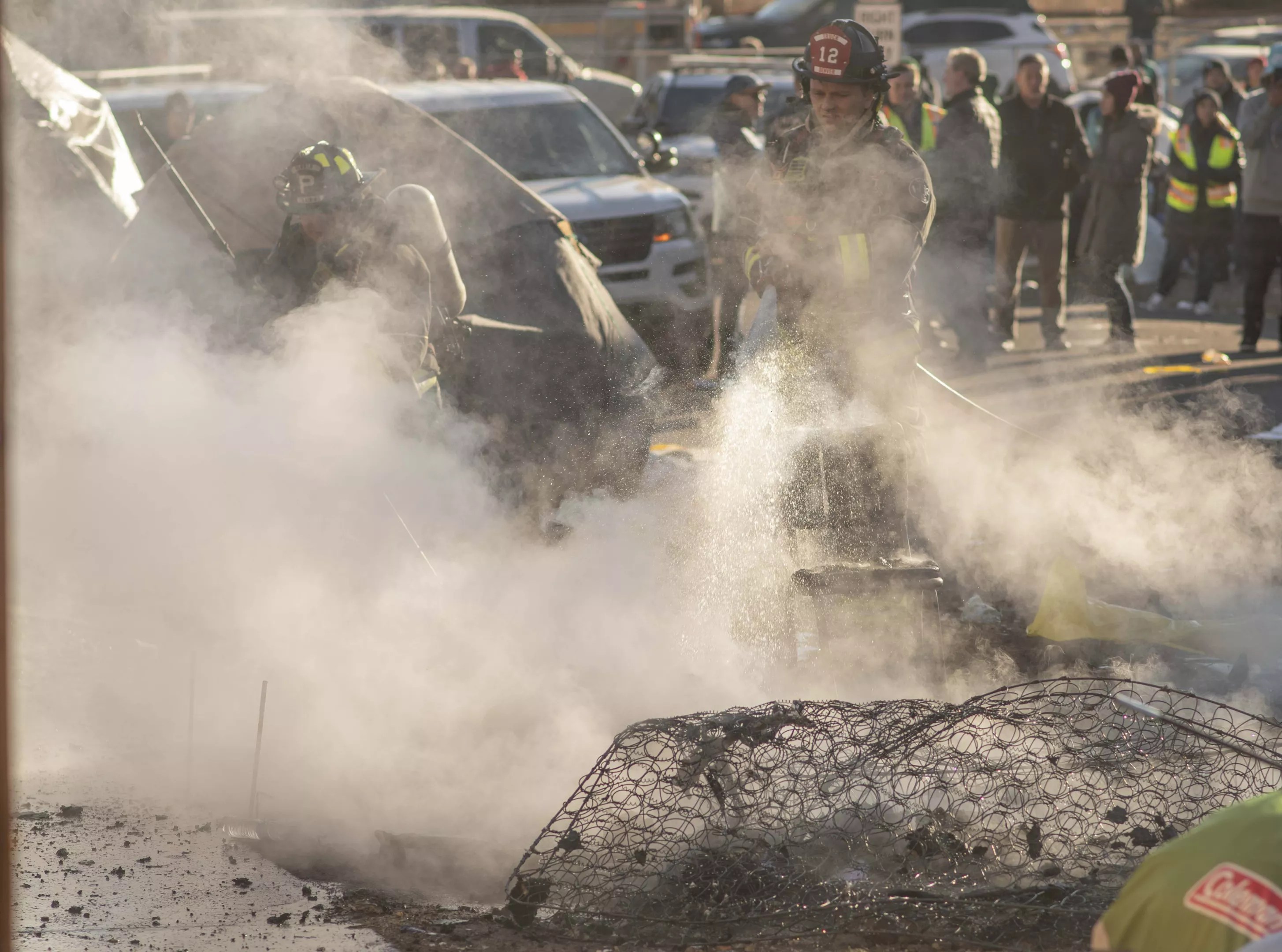Residents of the nearby Speer Apartments watched the progress of the sweep.