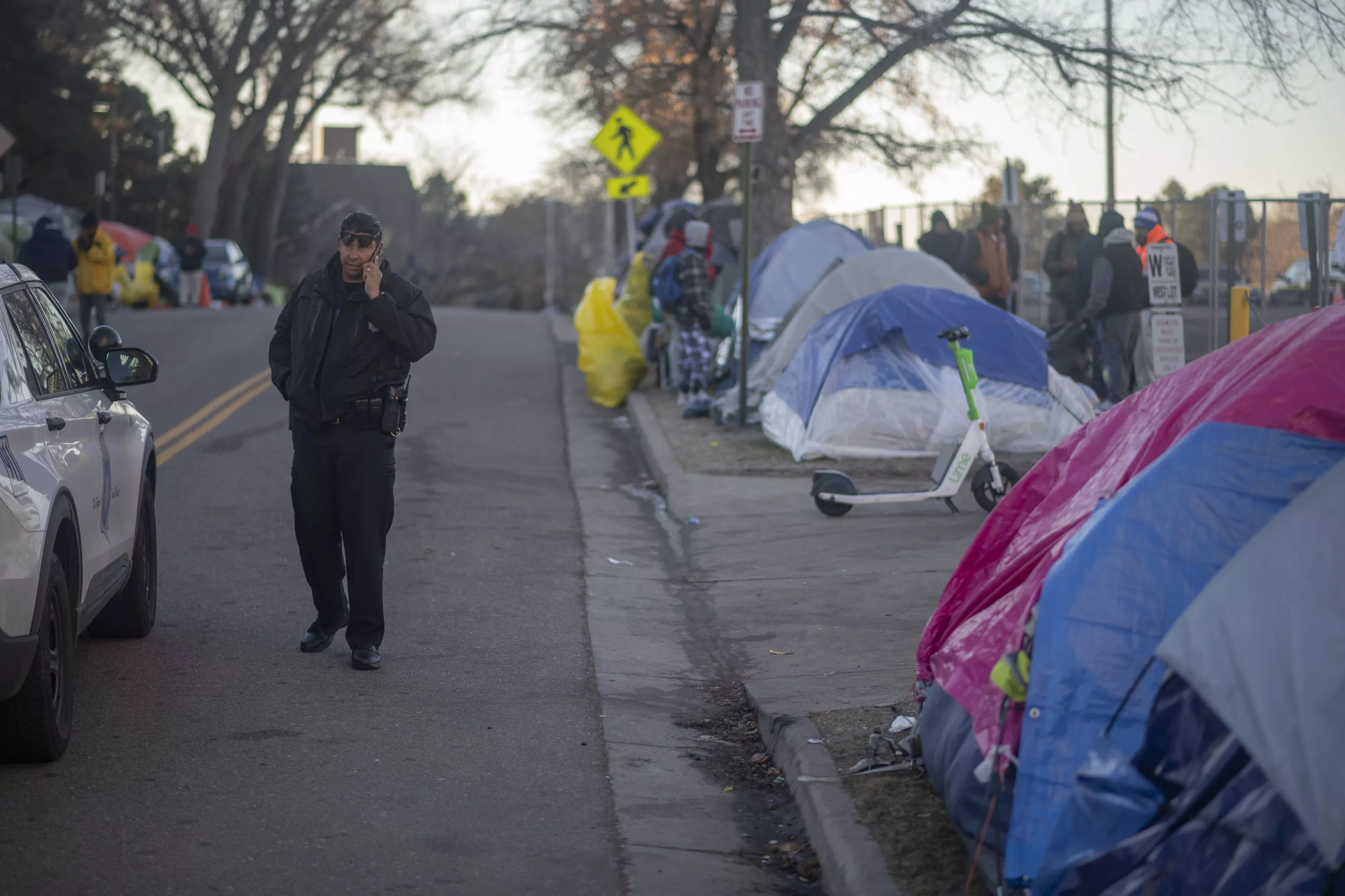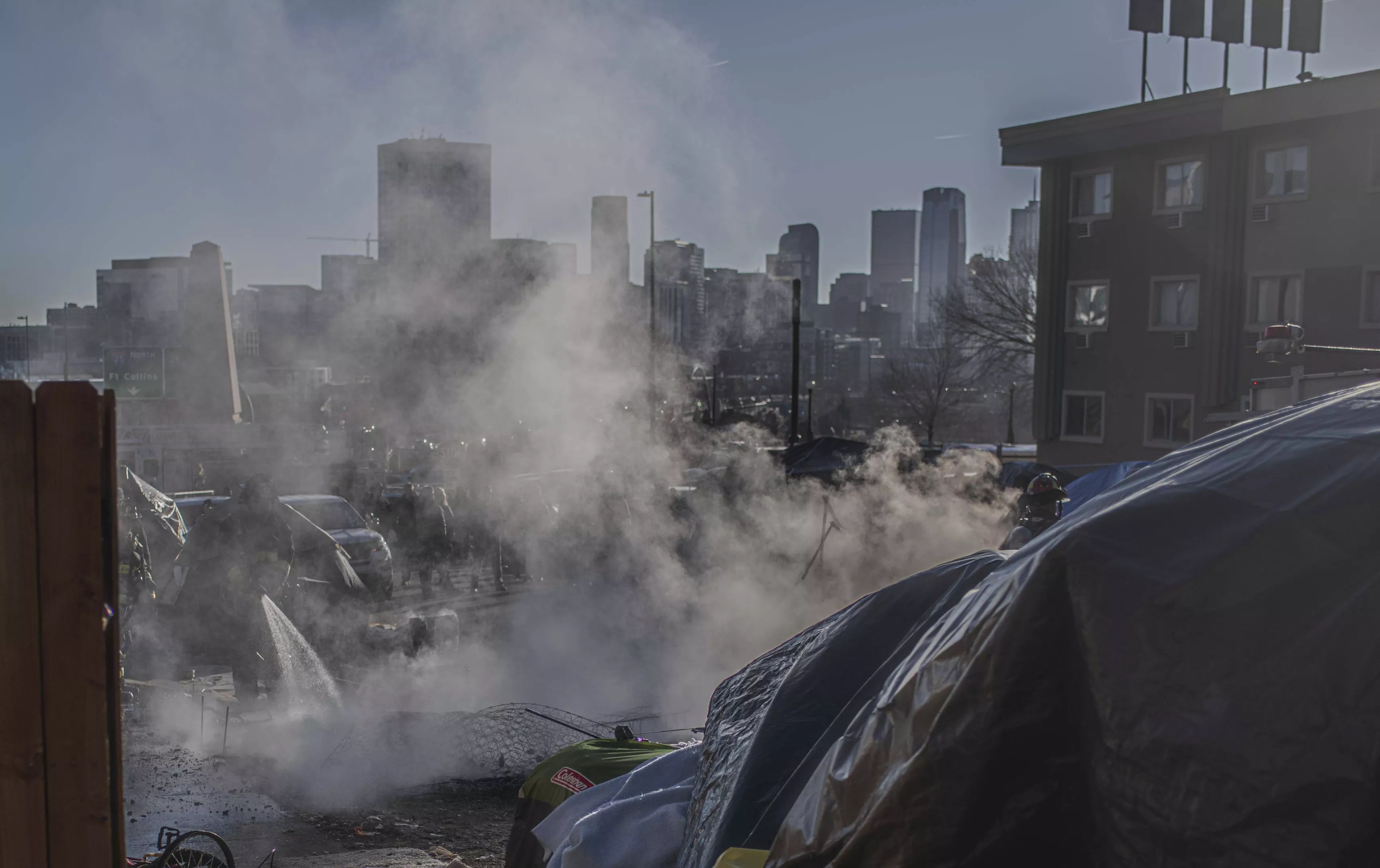 About two hours into the sweep, a fire broke out in a plastic tent just behind the Shell station in front of the encampment. Denver Fire, which was on site, was able to extinguish the blaze quickly.