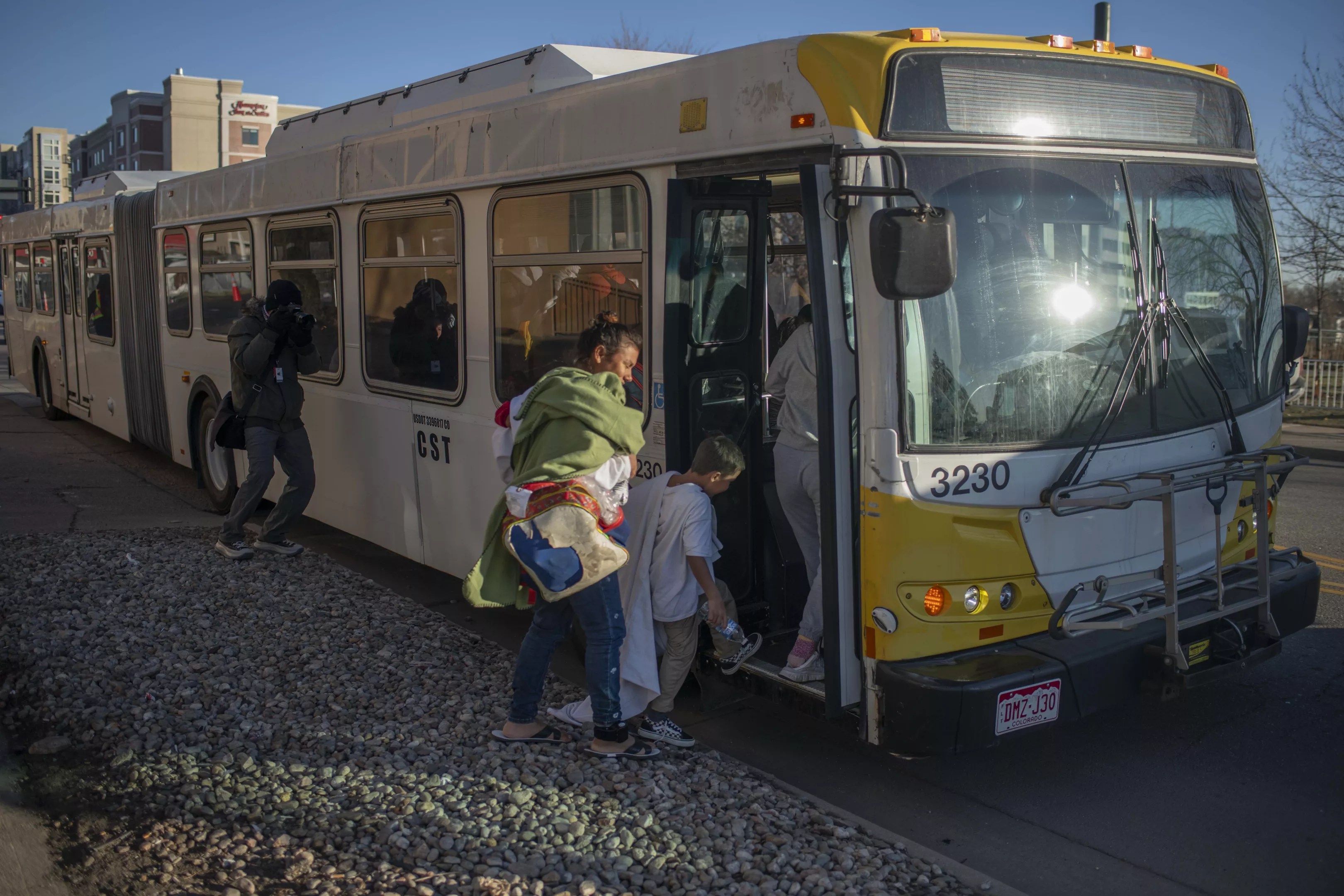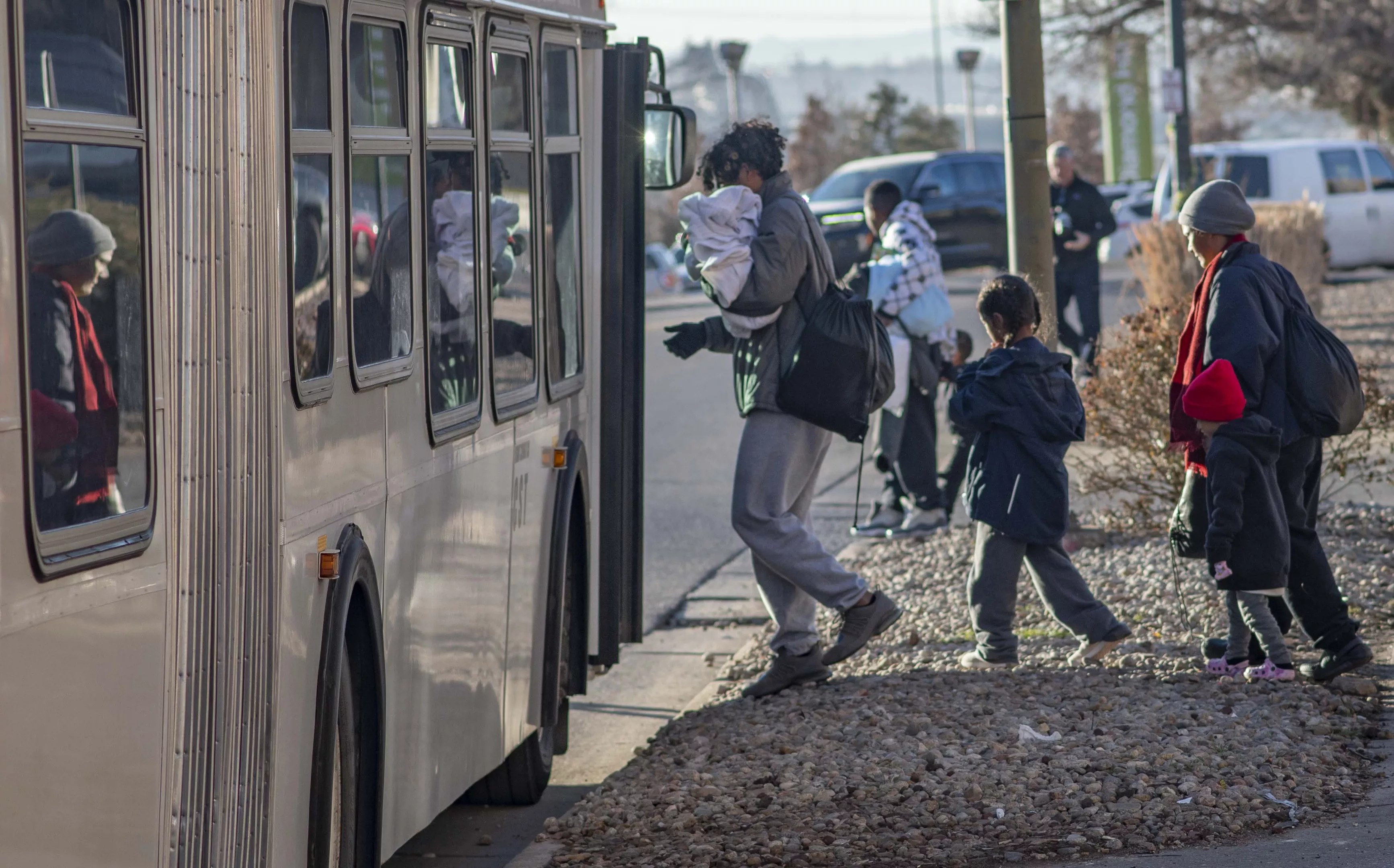 Some buses took people to the Denver Department of Human Services offices at 3815 Steele Street.