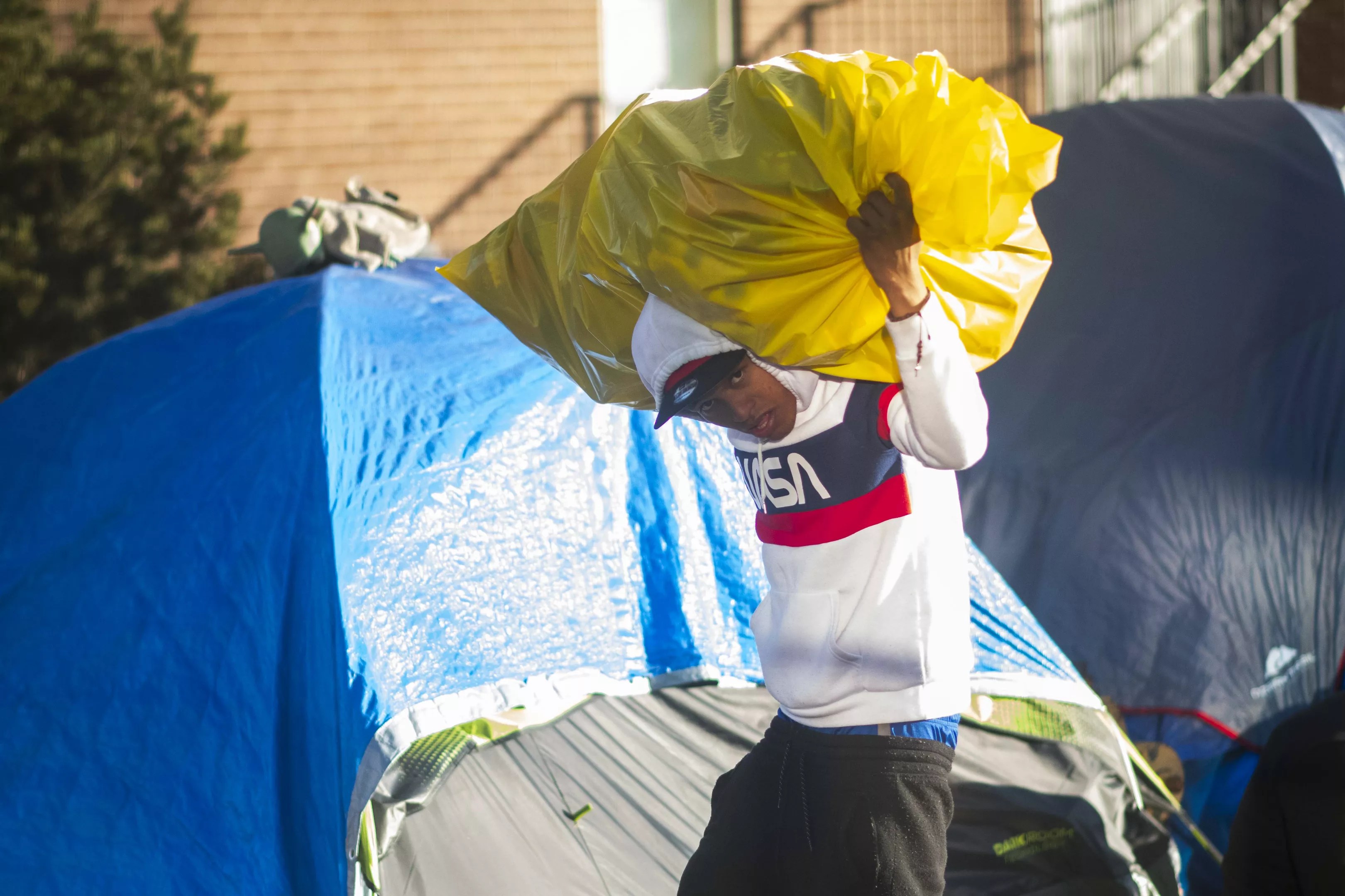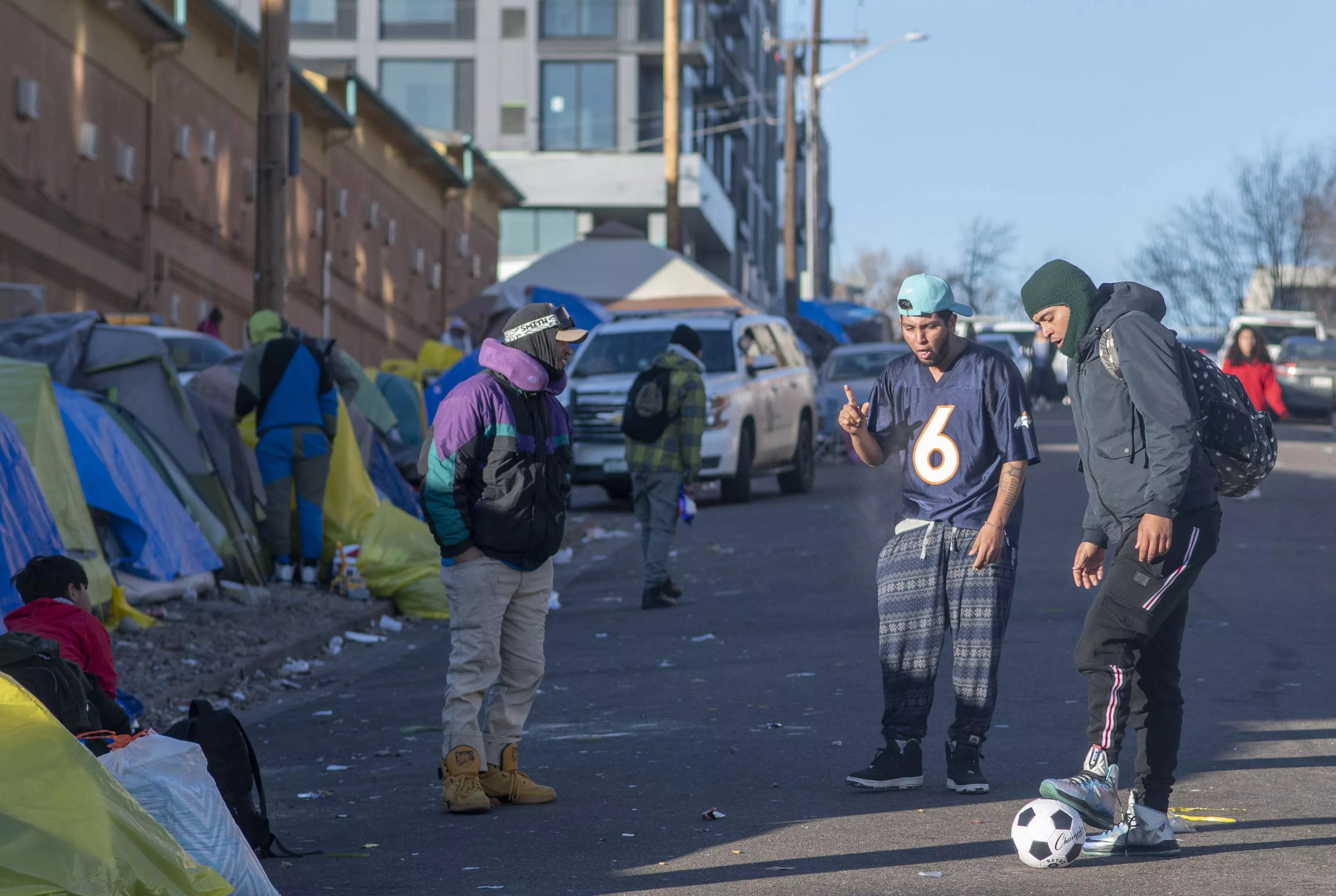 Migrants camping along a two-block stretch were loaded into buses and taken to various intake locations around the city, or sent on to more affordable communities in Colorado and beyond. As many as 400 people lived in the encampment; many had been sheltered in the Quality Inn on that corner off Speer Boulevard, then were timed out of housing.