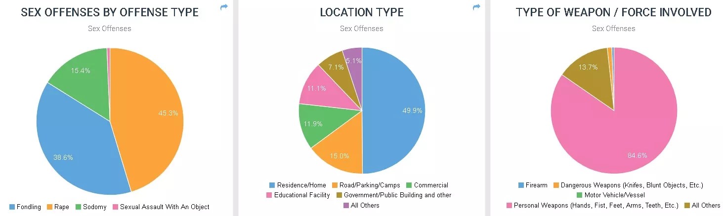 Continue to see the specifics for Denver during the past two years, below a graphic that depicts sex offenses by offense type, location and the sort of weapon or force involved.