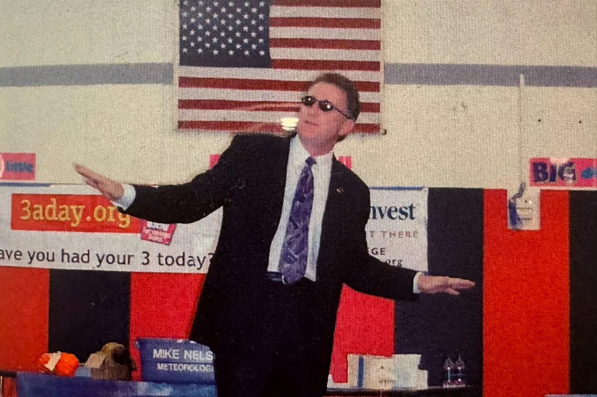 Nelson was the weatherman on 9News for twenty years before moving over to Denver7 in 2004. In 2006, he came by my school, Polton Elementary in Aurora, to talk about jet streams, thunderstorms and other phenomena, and he even did his imitation of how a tornado forms, which he called “the tornado dance.”