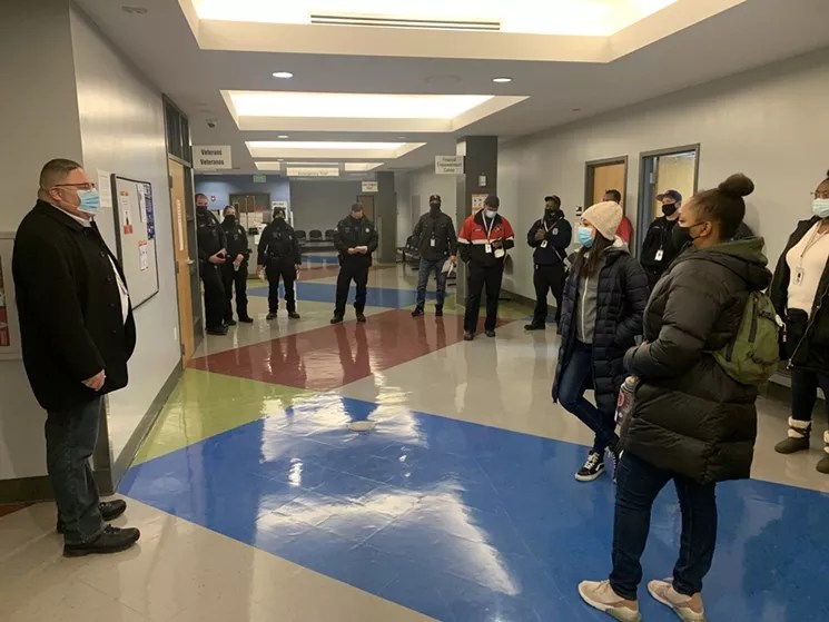 Armando Soldate talks to the Early Intervention Team and other city staffers.