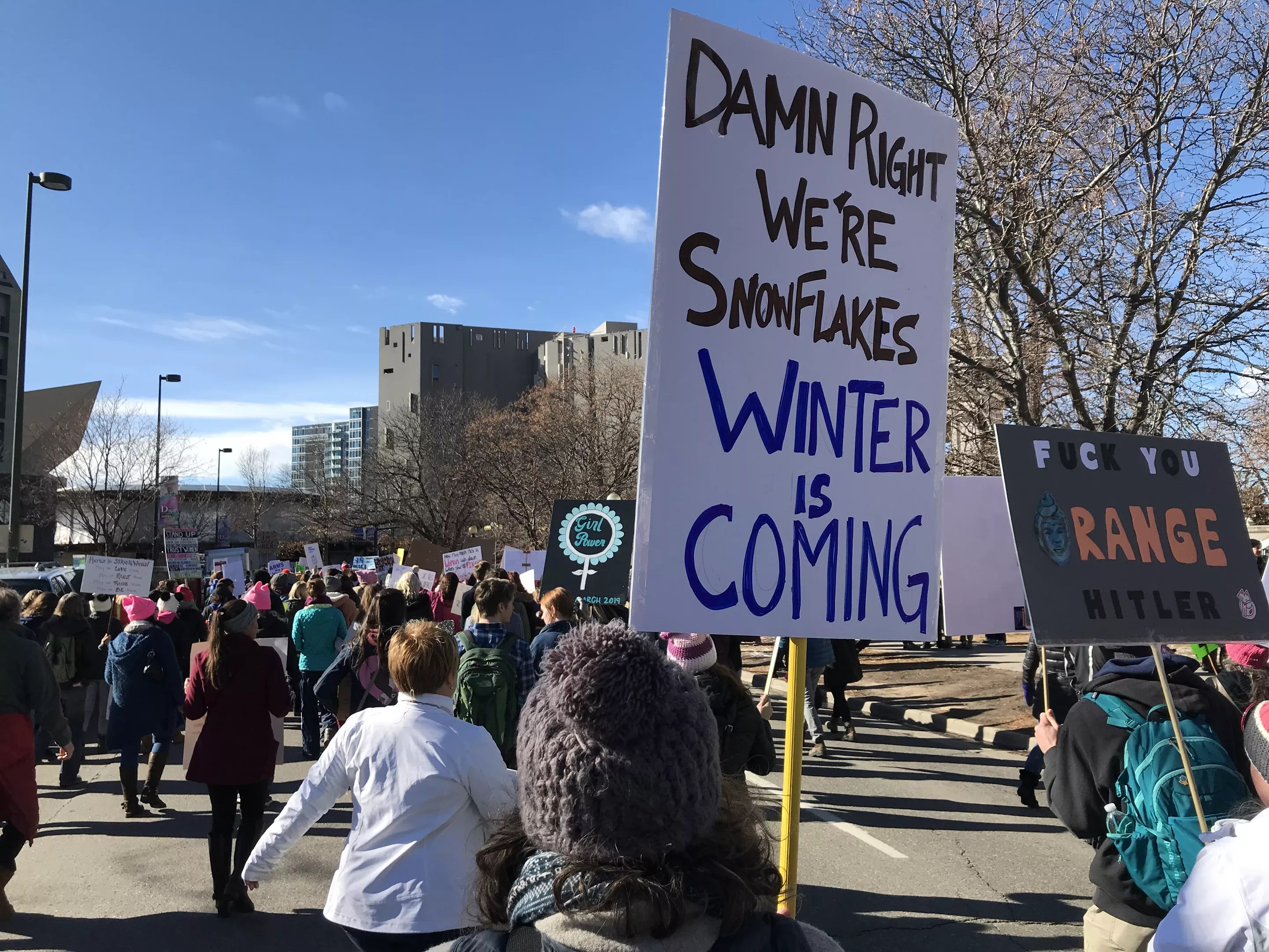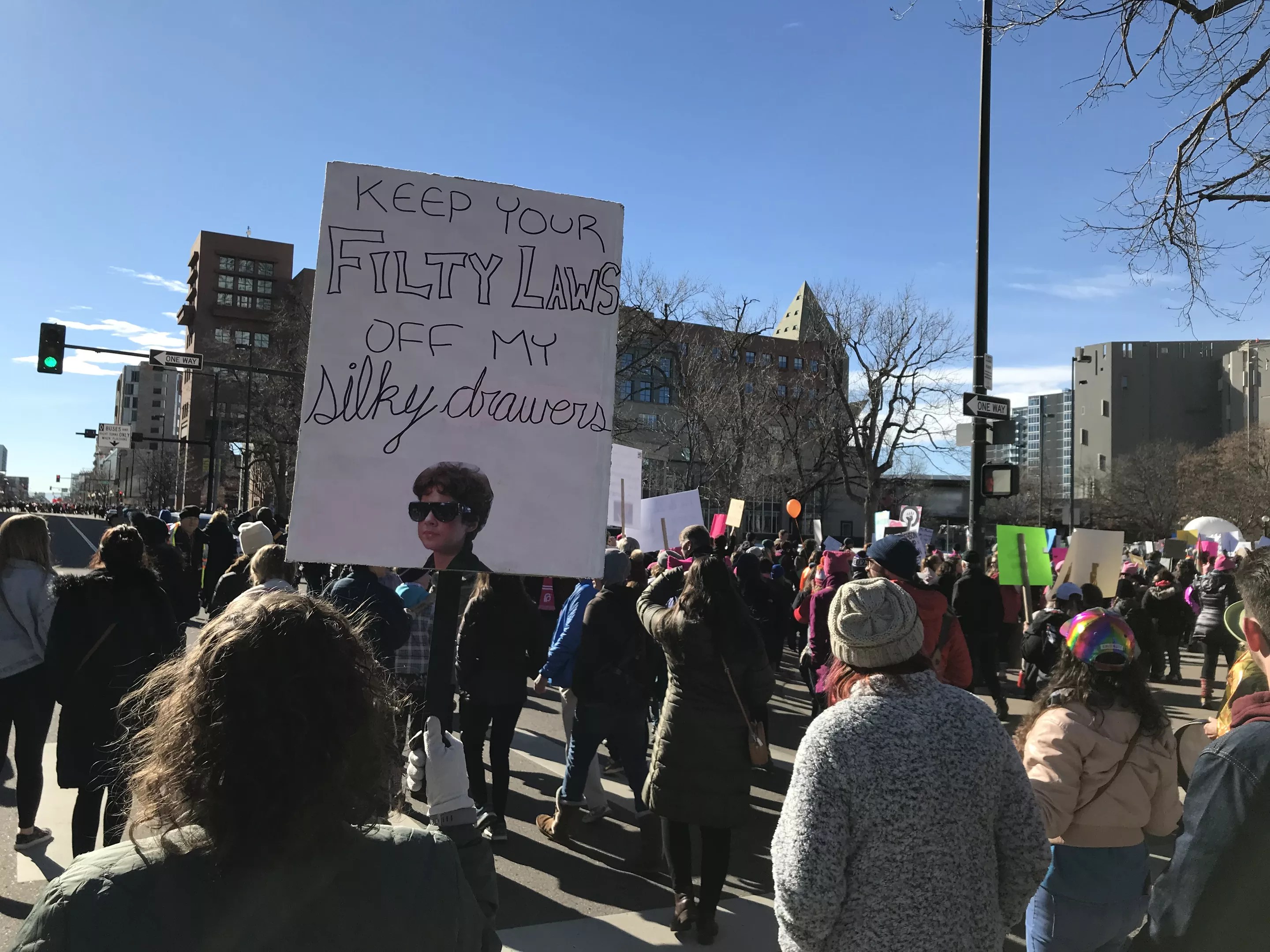 The signs themselves employed several different strategies – some were pointed, some were angry, some were poignant, and some were funny. But each and every one spoke from the heart. Here are twenty signs from the Womxn’s March Denver that paint a picture of the public: committed, passionate, clever…and sometimes just flat-out fed up.