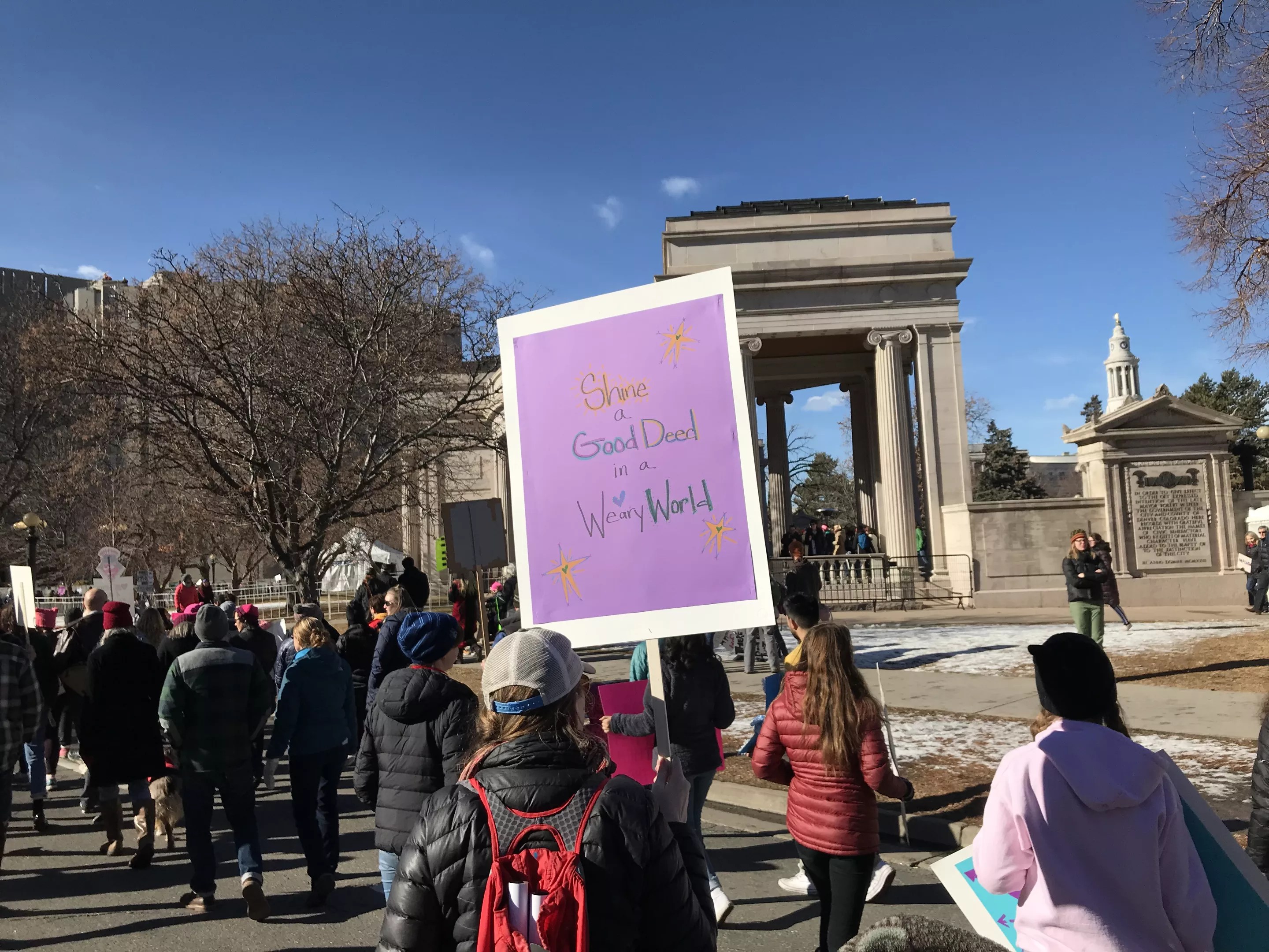 For the third year in a row, Coloradans took to the streets of downtown Denver to loudly proclaim their support of women’s issues, their objection to national and social policy that represses civil rights of all sorts, and to make their voices heard. As the marching chant goes: This is what Democracy looks like, and it was out in full force, with a sea of signs filling Civic Center Park as an estimated 80,000 demonstrators gathered for the 2019 Womxn’s March Denver.