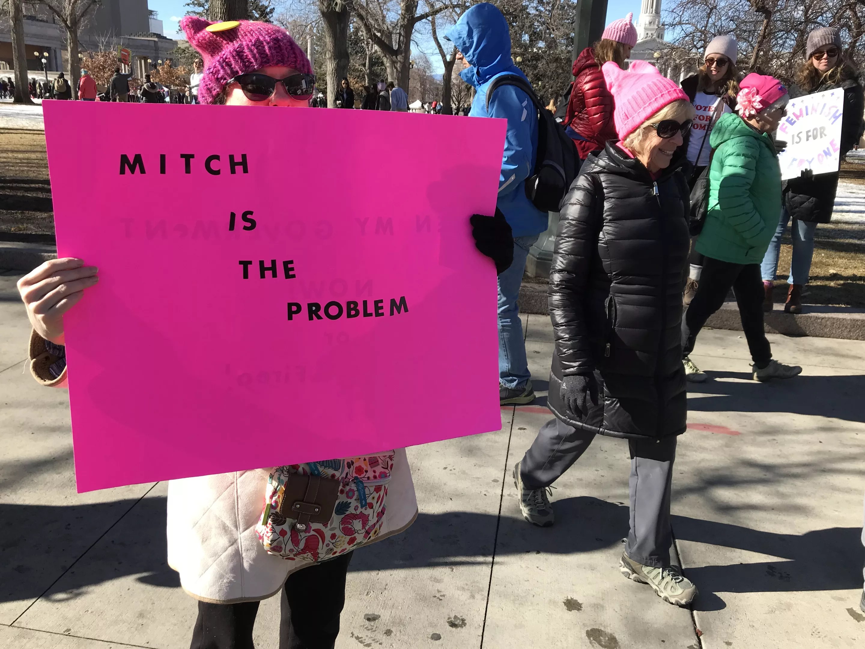One new complaint at the 2019 March was the role that Senate Majority Leader Mitch McConnell has played and continues to play in the fundamental dysfunction of American government. This sign is one of the more sedate of the batch – compared to some, it’s downright kind, worthy of the Kentucky gentleman that McConnell pretends to be.