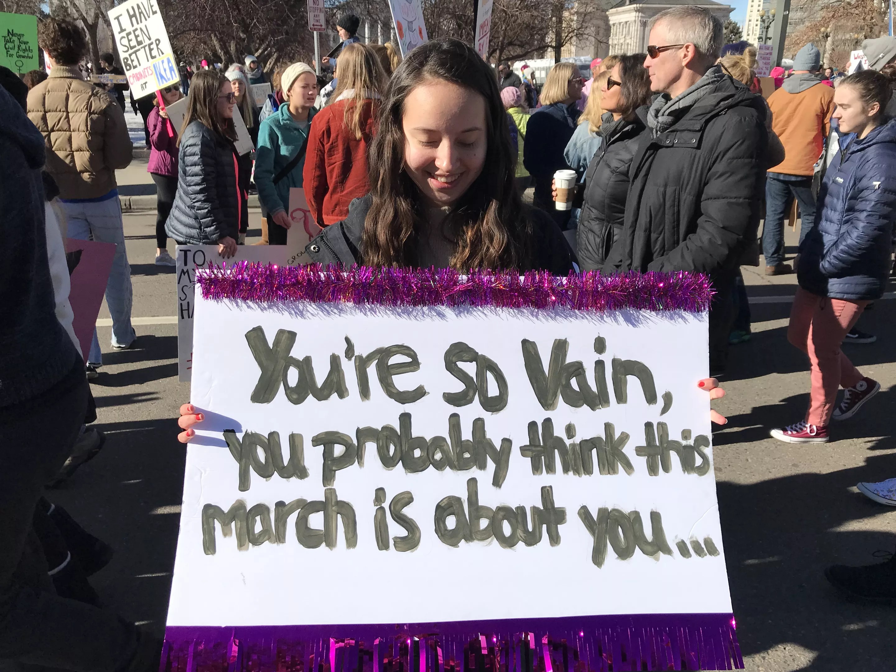 Sure, it’s a Carly Simon reference, a nod to the music nerds present at the March. But to whom is it directed? Trump? Mitch McConnell? Men in general? Maybe all of the above.