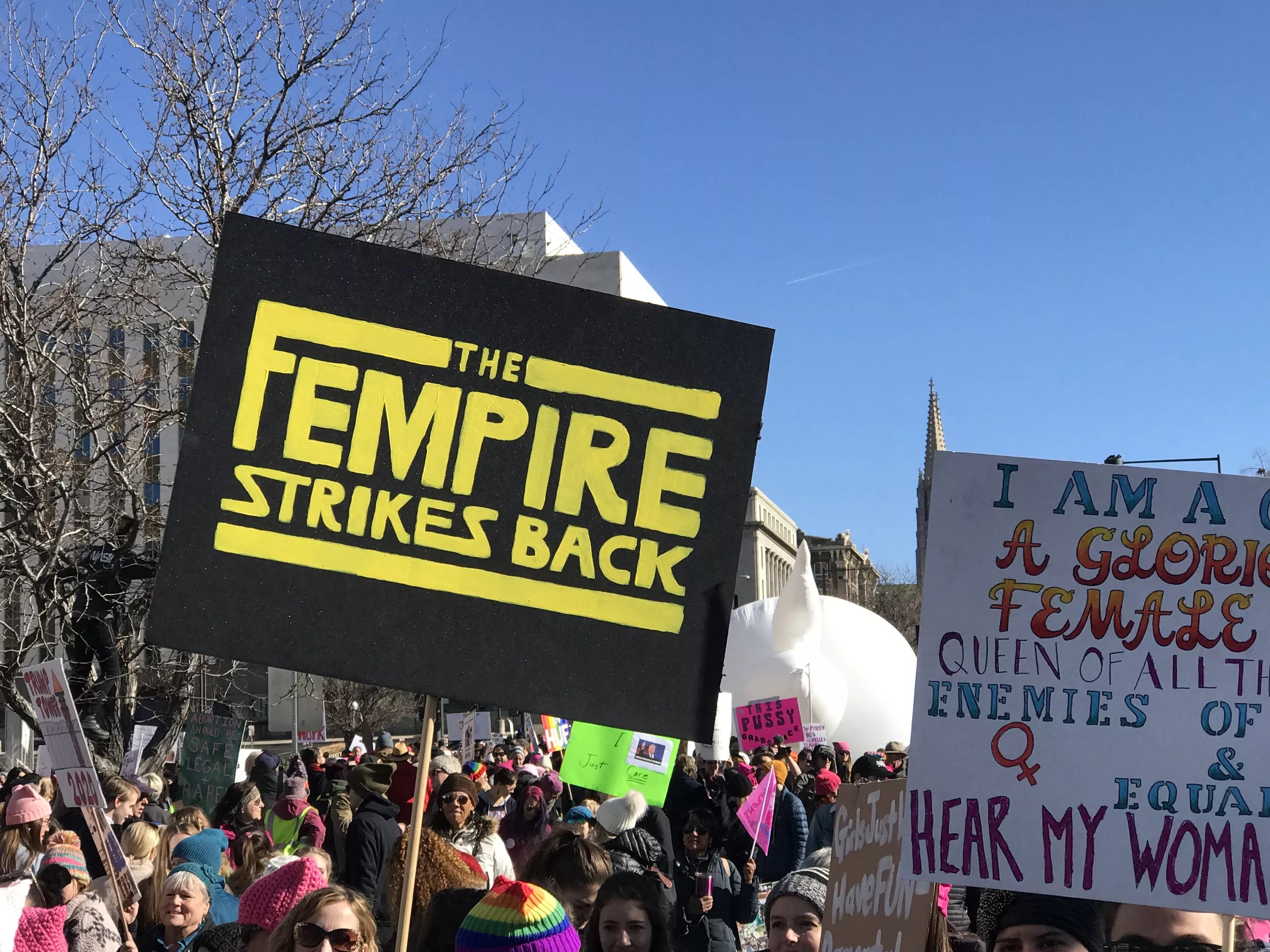 Star Wars signage has been prevalent from the beginning, with Princess Leia and “A Woman’s Place Is in the Resistance.” But it’s a dark time for the Republic, so it only makes sense that the March would move into Episode V territory.