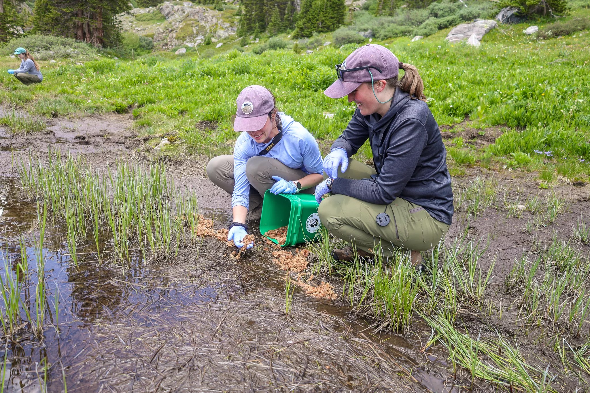 For Cossaboon, releasing the toads is the best part of the project. Zoo staff and regional biologists pack the baby toads into buckets with moist moss, go out to the Northern Sawatch Range and hike for about four and a half miles into the high country.