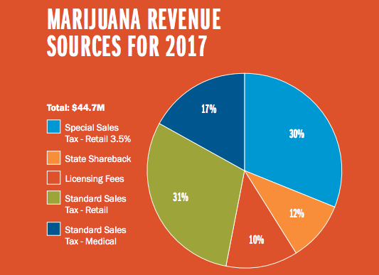 On the surface, the Denver results show that (once again) that the sky isn’t falling, but they also indicate that the city’s grip on Colorado’s marijuana money is slipping. Denver’s share of the state’s pot revenues fell nearly 10 percent from 2014 to 2017, the report shows, and now sit at 38.7 percent. But that reduction wasn’t due to slipping demand, as Denver sales increased over 77 percent in the same span, accounting for over a half-billion dollars last year.