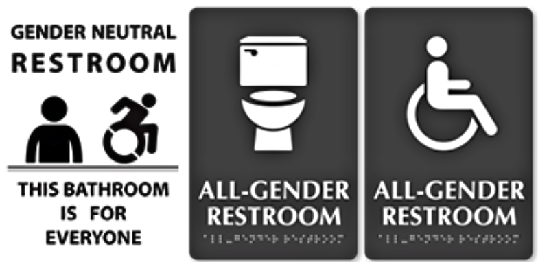 “People can get really creative – and I’ve seen a couple of ones around town that are pretty cute,” Swartz says. “But the only thing you can’t do is imply a gender through a picture or text. If it’s an ADA [Americans with Disabilities Act] bathroom or a family bathroom, you still have to somehow state that’s the case. But it doesn’t have to use the phrase ‘gender-neutral.’ If you only want to use the word ‘restroom’ or ‘toilet,’ that’s fine, as long as you’re not saying it’s for only men or only women.”
