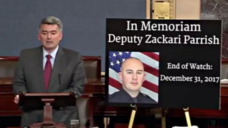 Senator Cory Gardner paid tribute to fallen Douglas County Deputy Zackari Parrish on the floor of the U.S. Senate earlier this month.