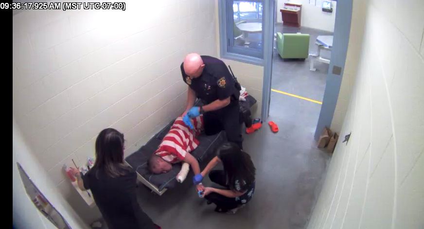 Responding to the seizure depicted above, Douglas County deputies check Hartwell’s vital signs. Records indicate anti-seizure medication was ordered but not administered.