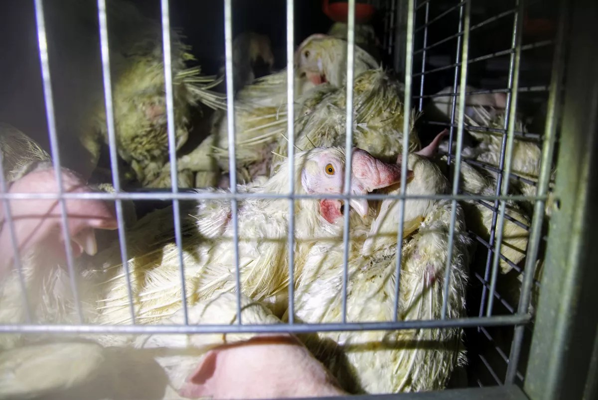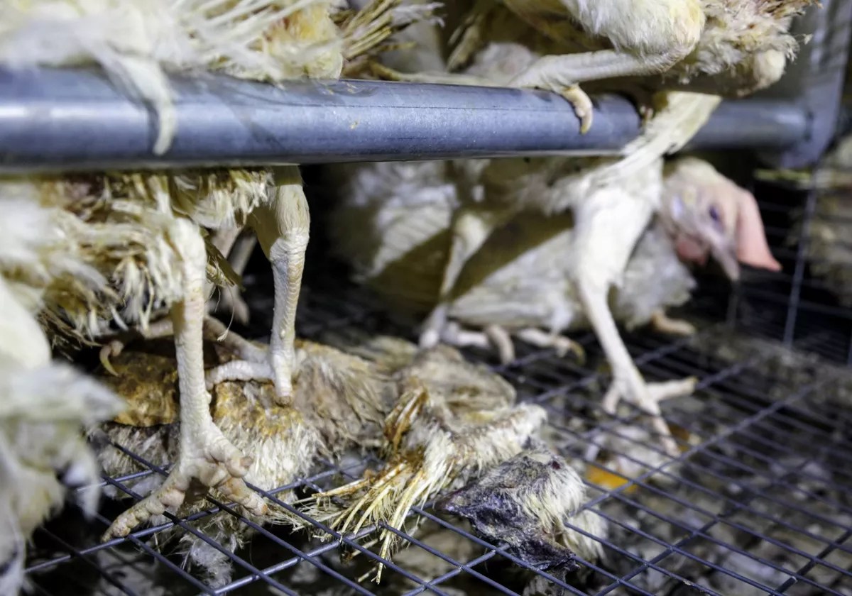 Many of them looked sick, with bent beaks and wilted feathers. An inch of feathers and feces covered the floor beneath the cages, and mice and maggots rummaged through rotting eggs. The activists started taking photos and videos of the conditions, occasionally stopping when they saw a dead hen.