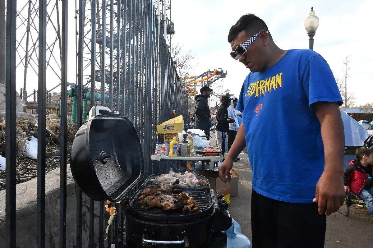 Migrants who aren’t staying at the encampment still visit the area to use the group’s propane grill.