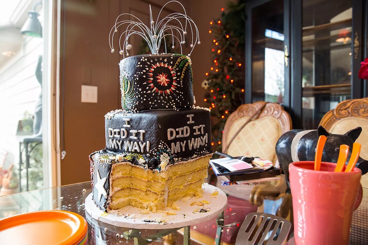 Following the box ceremony, Lee cut her cake, which had “I Did It My Way” – lyrics from the song made famous by Frank Sinatra – written on it. She had already given away her silverware, so guests ate with plastic forks.