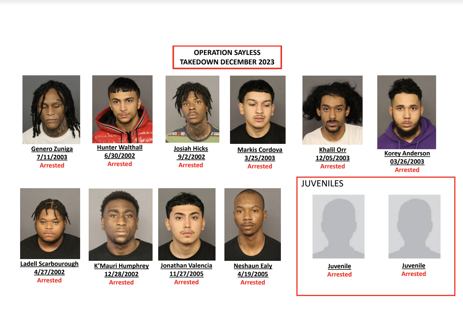 Gabriel Frias, Aaron Charron, Nathan Perez, Christopher Nevarez, Micah Garduno, Jacob Gregory, Nash Mitchell, Javier Jurado and Charees Loftin, ages eighteen to 27, were indicted by a grand jury in connection with their alleged involvement in one crime ring. Another fourteen individuals — Genero Zuniga, Hunter Walthall, Josiah Hicks, Markis Cordova, Khalil Orr, Korey Anderson, Ladell Scarbourough, K’Mauri Humphrey, Jonathan Valencia and Neshaun Ealy, who were all eighteen, as well as two juveniles — were charged in Operation Say Less for participating in a similar but unconnected crime spree.