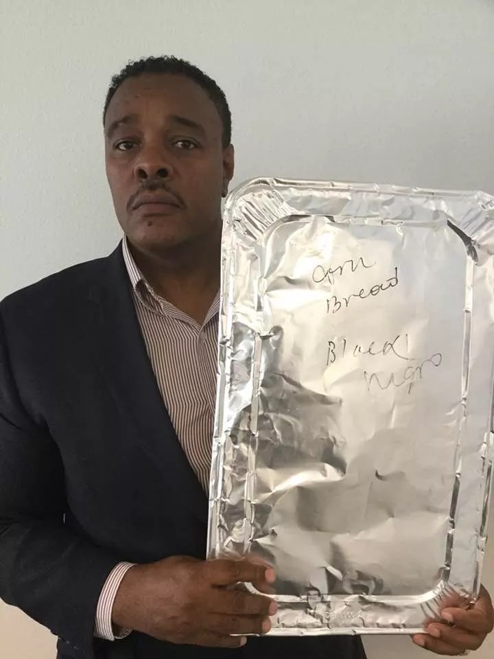 When the food was delivered to the church, the lids of two of the containers of cornbread had this message: “cornbread Black/negro.” Porter was shocked and thought they referred to the fact that he presides over a black church. “We were very offended,” he says. “We didn’t understand why that was written on our food. If you’re an African-American and you received that, you don’t know if they put something in the food or not.”