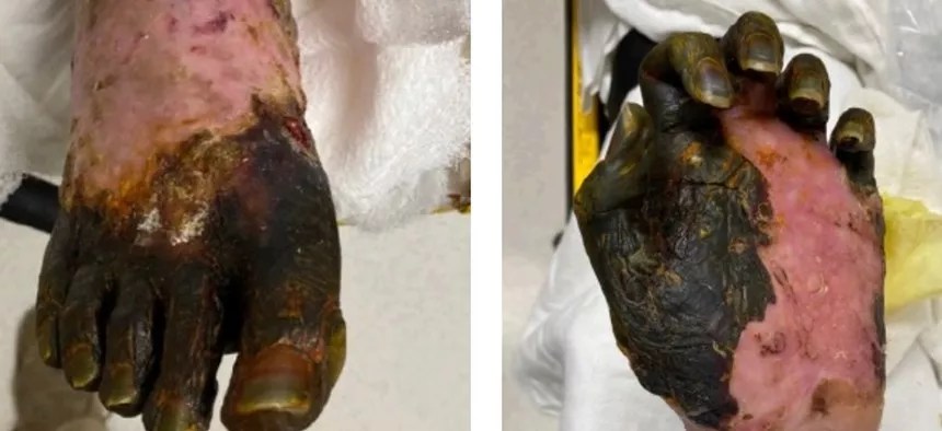 Photos of Christopher Tanner’s hands and feet prior to amputation.