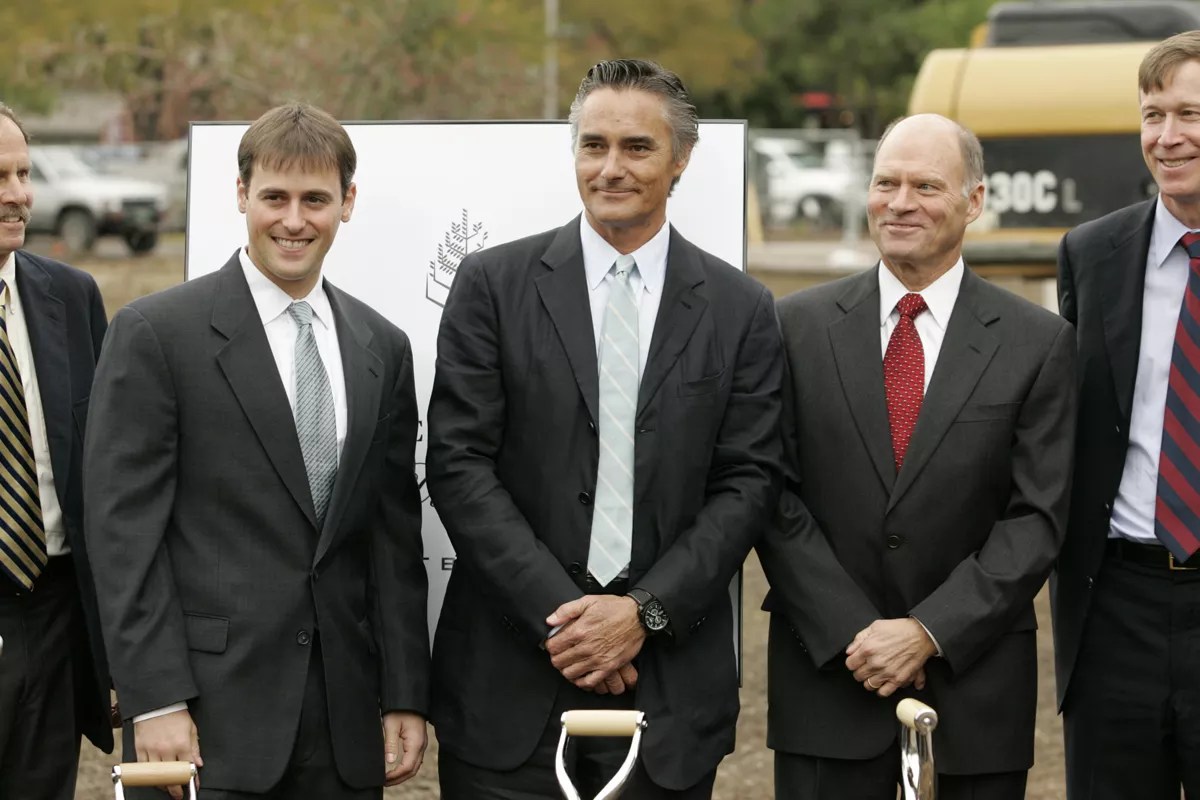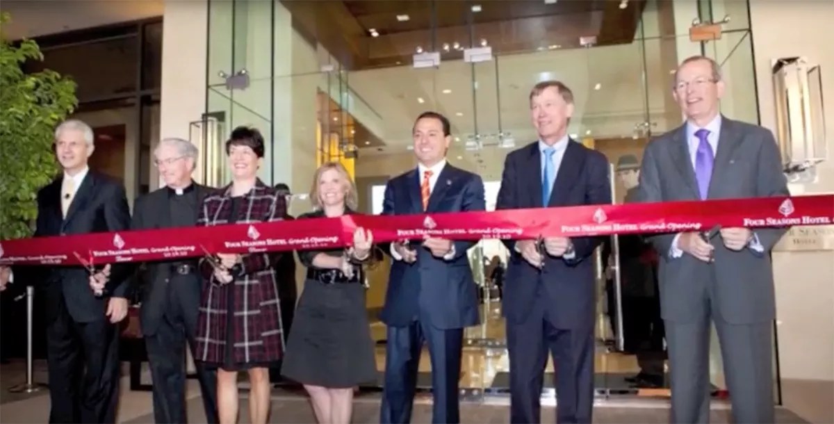 Participants in the 2007 groundbreaking for the Four Seasons included Dan Wolf (second from left), Michael Brenneman, Jeff Selby, then-Mayor John Hickenlooper, and (third from right) Salom