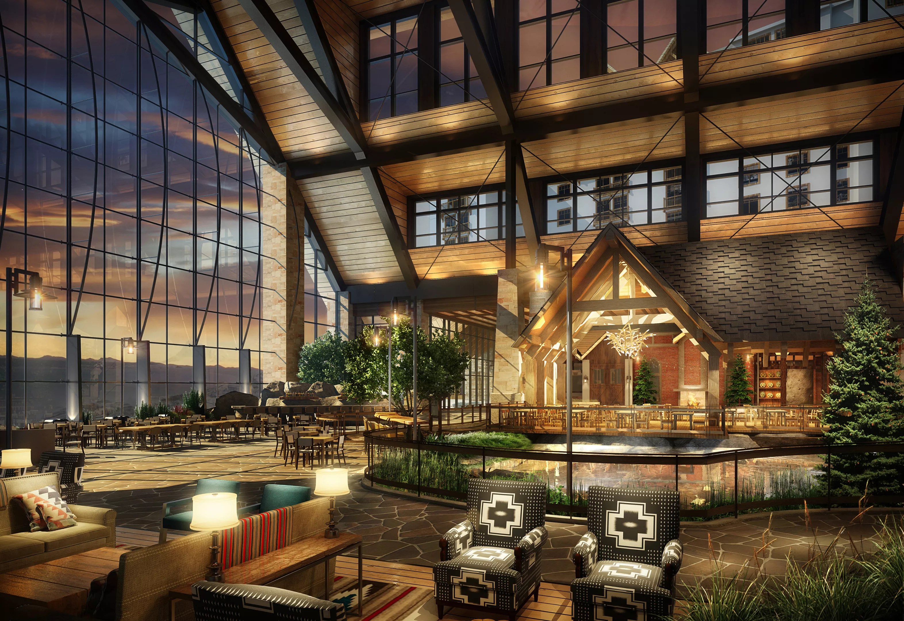 Like Gaylord’s other four hotels, its Rockies iteration will highlight characteristics that define the region where it’s located. But unlike some of its other properties, the Gaylord Rockies will be a bit more generic. The Gaylord Texan, for example, gives guests a “tour” of state landmarks within the comfort of a climate-controlled atrium, including the Alamo, the San Antonio River Walk and Palo Duro Canyon. The Gaylord Rockies will deliver the flavor of Colorado without offering replicas of landmarks like Red Rocks or Maroon Bells.
