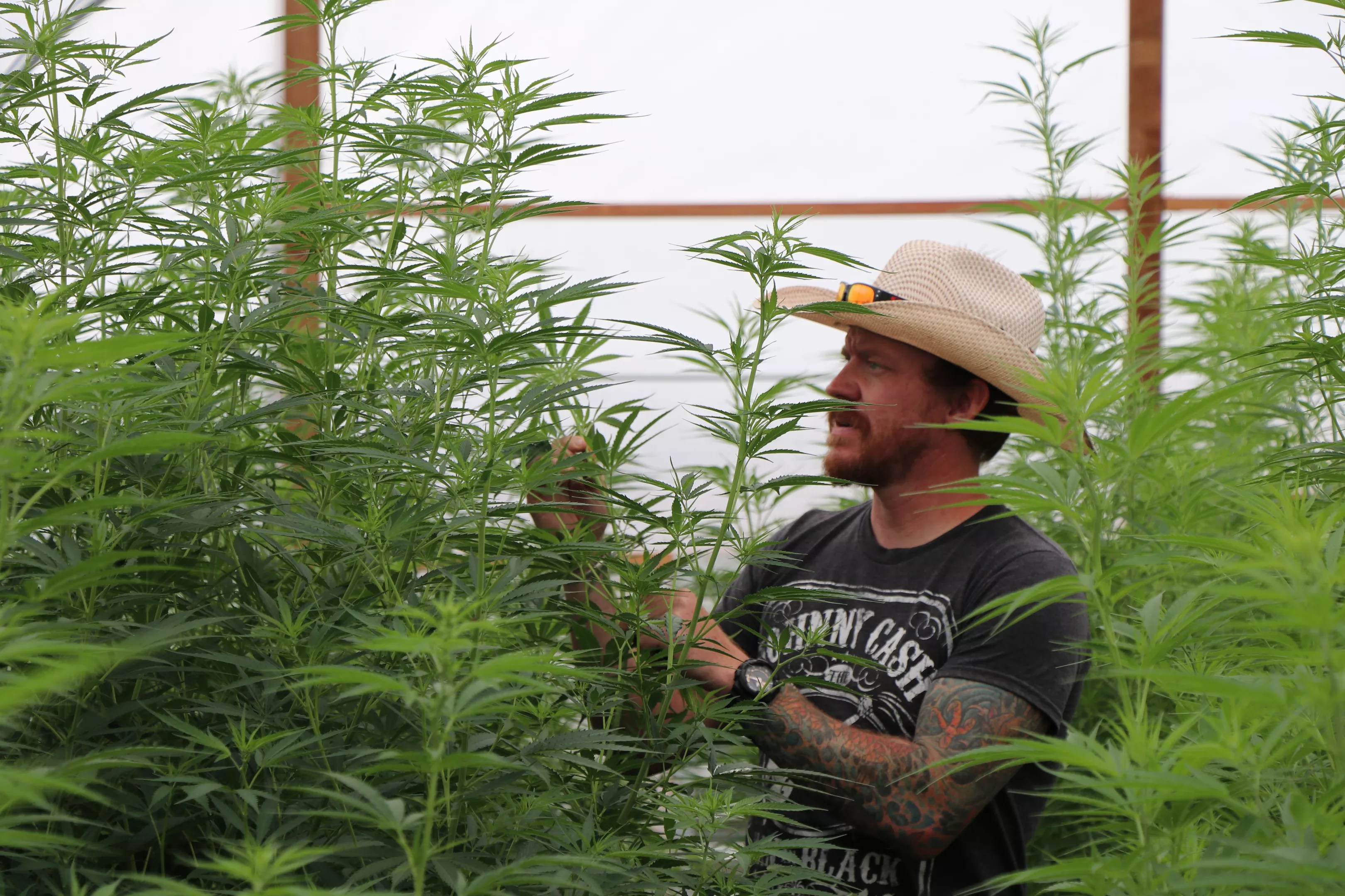 Gabe Rimey tends to his CBD-rich varieties of hemp inside his greenhouse cultivation in Franktown.