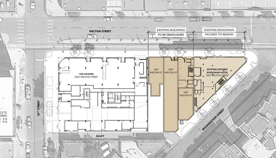 The plan would keep the Rossonian’s historic facade intact while demolishing the three buildings next to the Rossonian, which are also owned by Palisade. The result would be a hotel, restaurant and bar with some sort of music component; there’s also talk of a speakeasy lounge in the basement of the existing Rossonian. Palisade operates the Hooper, a hotel just down the street; the proposal calls for connecting the Rossonian development with the Hooper.