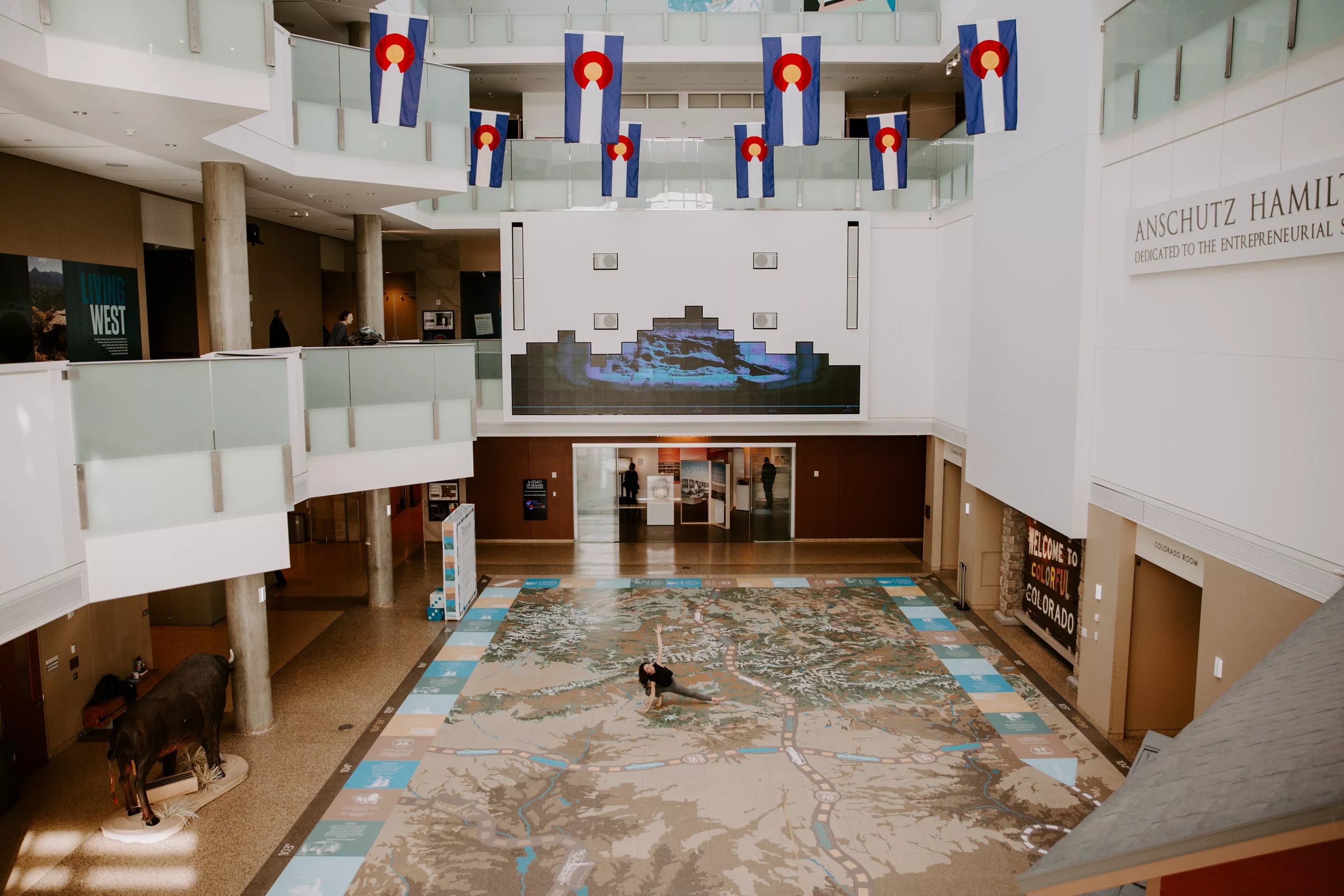 When the History Colorado Center opened at 1200 Broadway on April 28, 2012, ten years ago last Thursday, the $110 million museum boasted many marvels, including a huge terrazzo map of the state as it would look from 400 miles up in space, inlaid in the floor of the giant atrium. But even from just four stories above, at the top of the David Tryba-designed building, Colorado artist Steven Weitzman’s piece was stunning, with rivers, mountain ranges and other topography outlined in stone and recycled glass. Here and there, the map was studded with metal markers; pass over a spot while riding on one of the center’s newfangled, steampunk-y time machines, and you’d get a story.