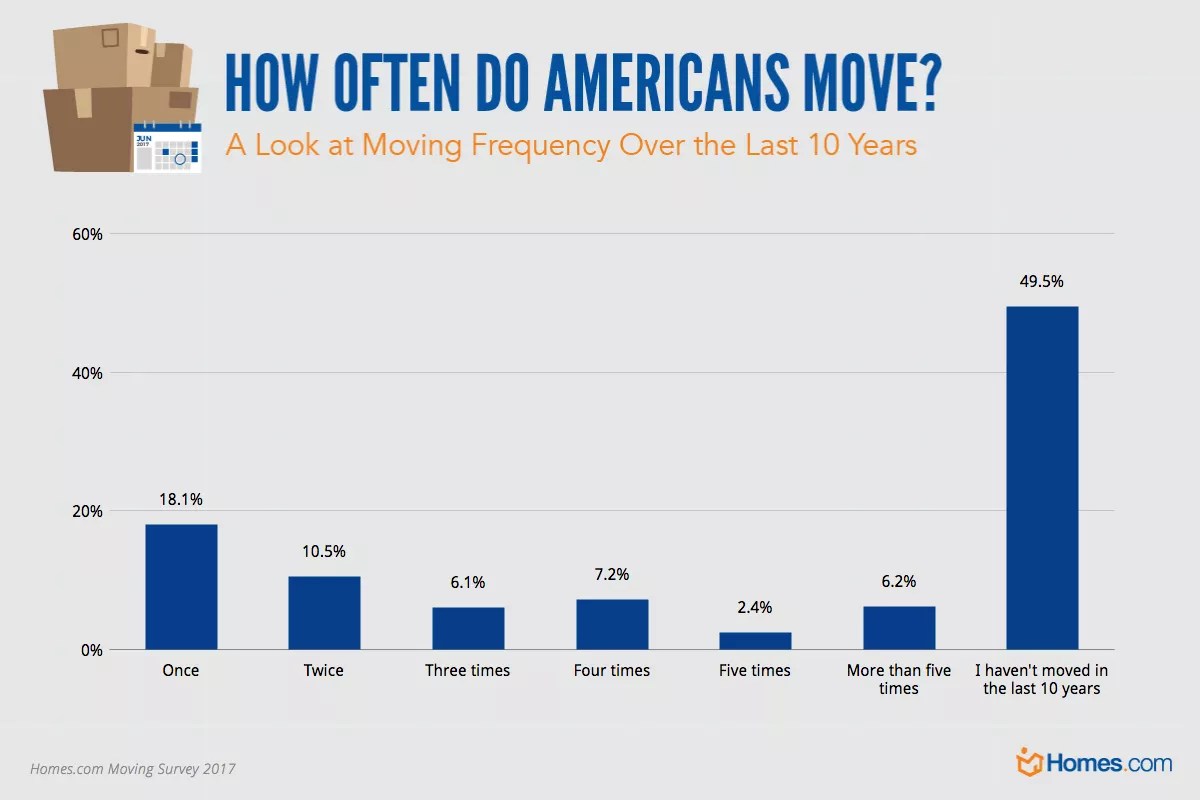 Besides identifying which city respondents would move to if given the chance, the survey also asked about historical moving trends, like how often people move and for what reasons. Below are some additional graphics detailing findings from the survey.