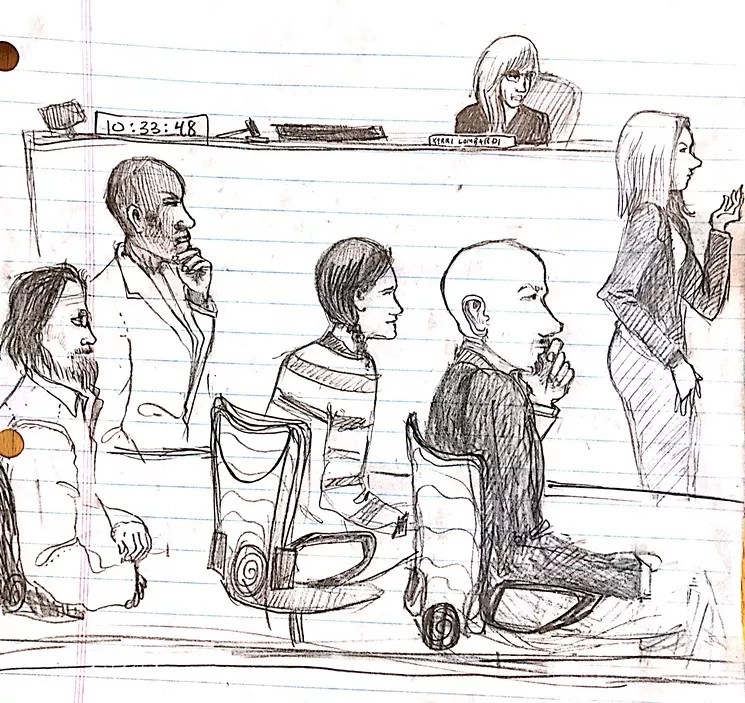 1. In Controversial Trial, Homeless Found Guilty of Illegal Camping Sketch by Karen Seed