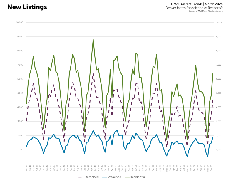 New listings in metro Denver are approaching pre-pandemic numbers.