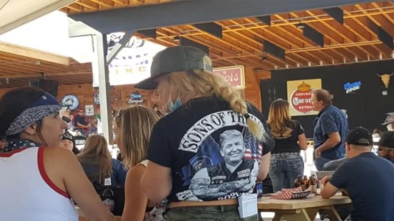 The seating area during the MAGA Bikers for Trump Rally was essentially a no-mask zone.