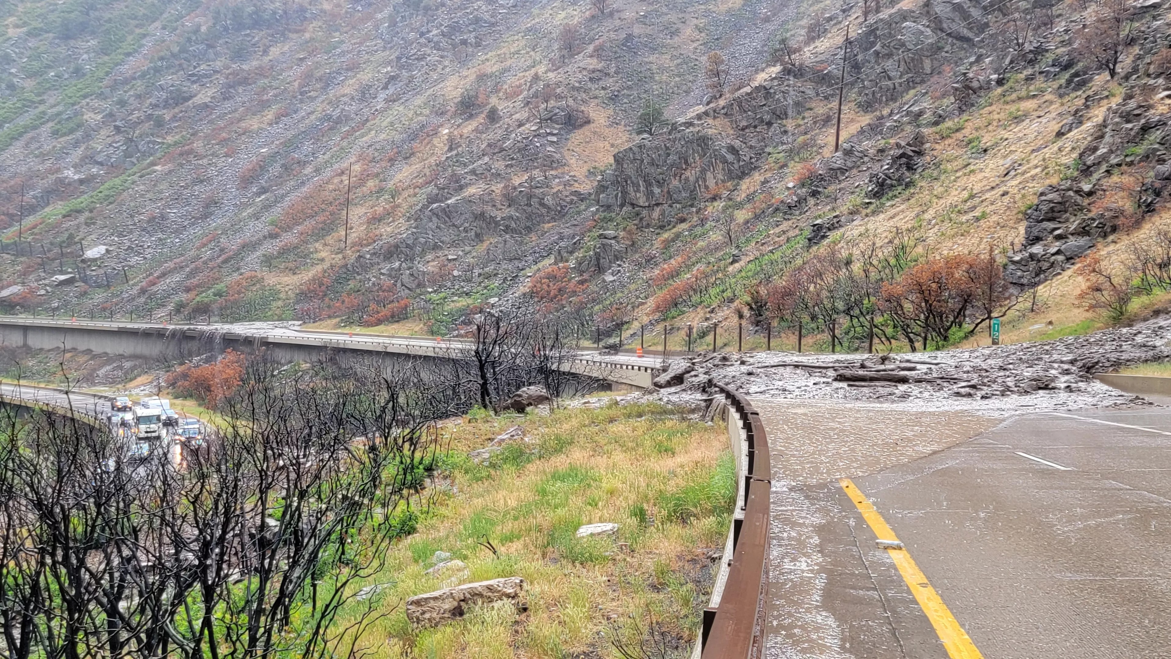 Update: At 6:17 p.m. on June 28, the Colorado Department of Transportation tweeted confirmation that both the eastbound and westbound lanes of Interstate 70 through Glenwood Canyon had reopened following multiple mudslides between exit 113 at Glenwood Springs and exit 133 at Dotsero. However, CDOT’s update page notes that “motorists should be prepared for additional closures in the area this week due to forecasted precipitation/potential debris flow over the Grizzly Creek burn scar.” Continue reading for our previous coverage published at 6:30 a.m. June 27, including photos and a video.
