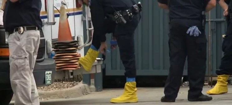 Investigators wore rubber boots as they investigated Pesina’s murder.