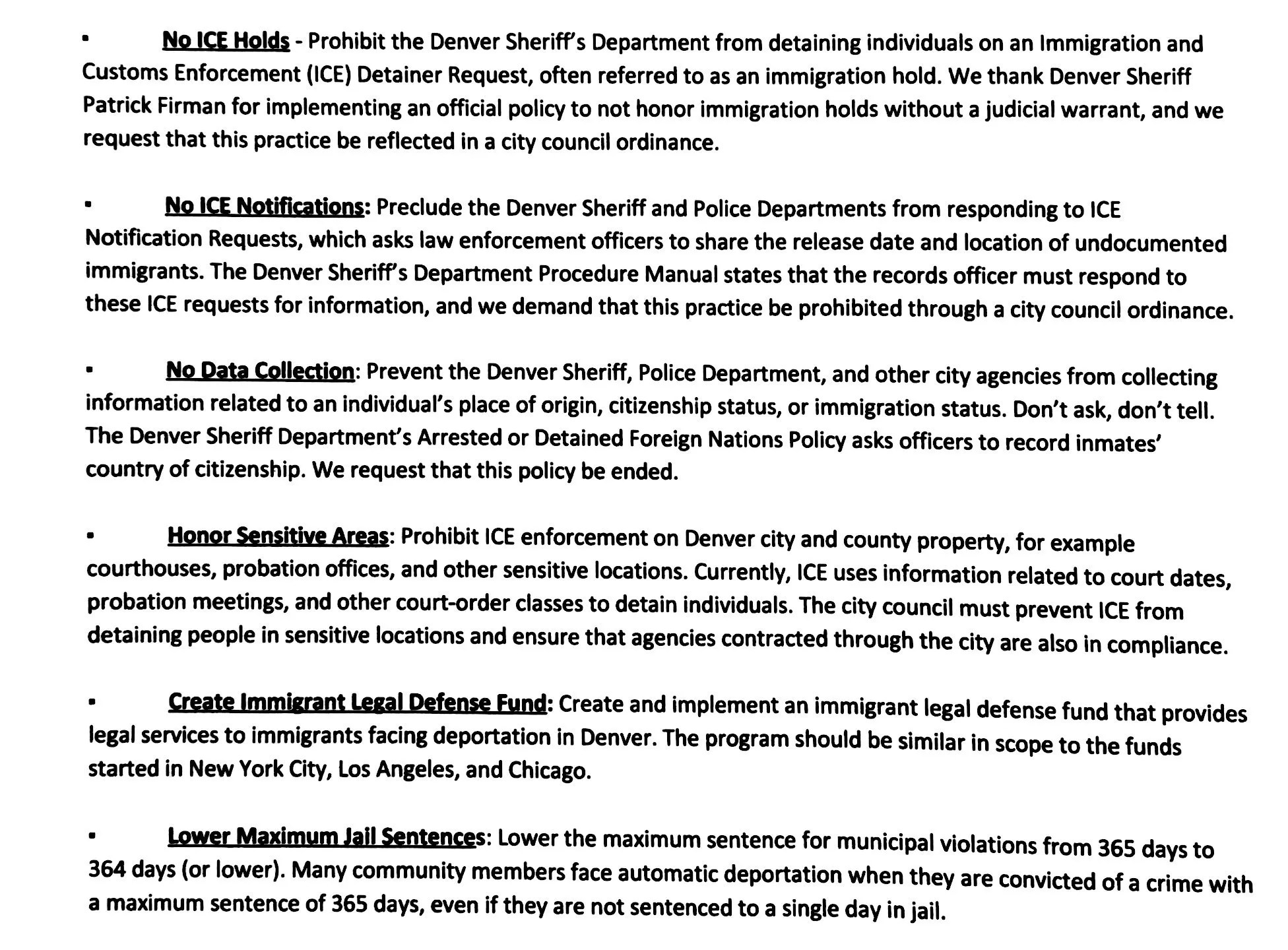 “If the City of Denver adopts this policy, it will create a clear line between immigration and local law enforcement,” said Morones.