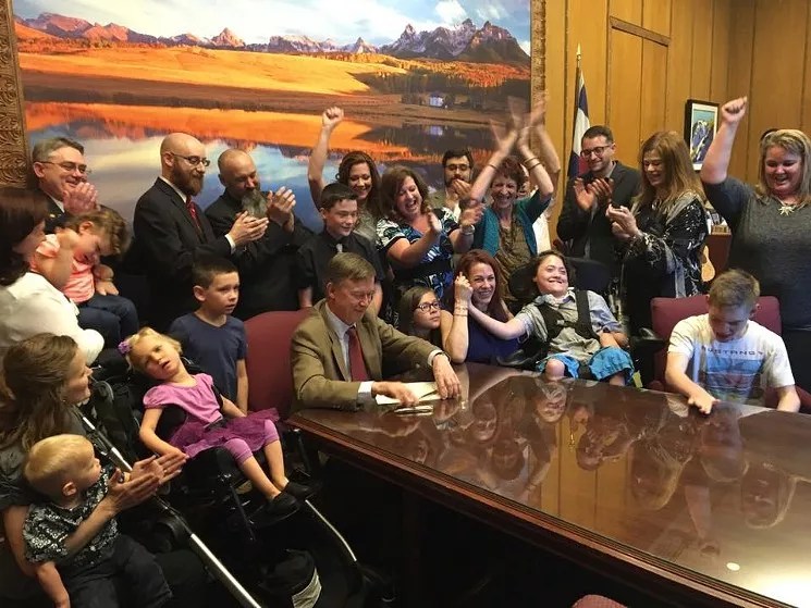 Governor John Hickenlooper signs House Bill 16-1373 , popularly known as Jack’s Law, as Jack Splitt looked on.