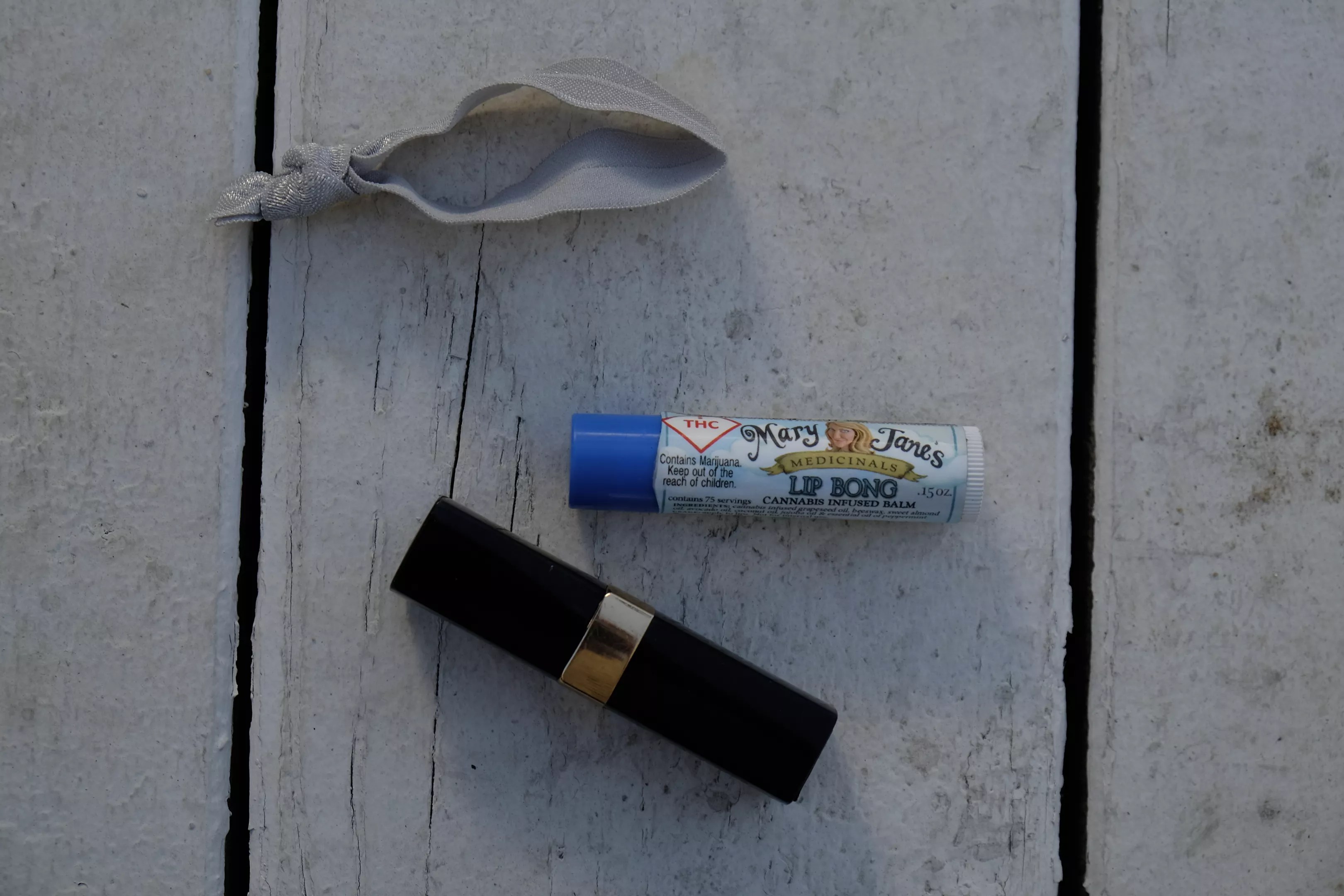 Girl StuffGuys always wonder about all the extra stuff that women carry around, especially makeup and grooming items. “I have this on me all the time,” West says of her Mary Jane’s Lip Bong. “It really does work. I sneak it on my kids.”