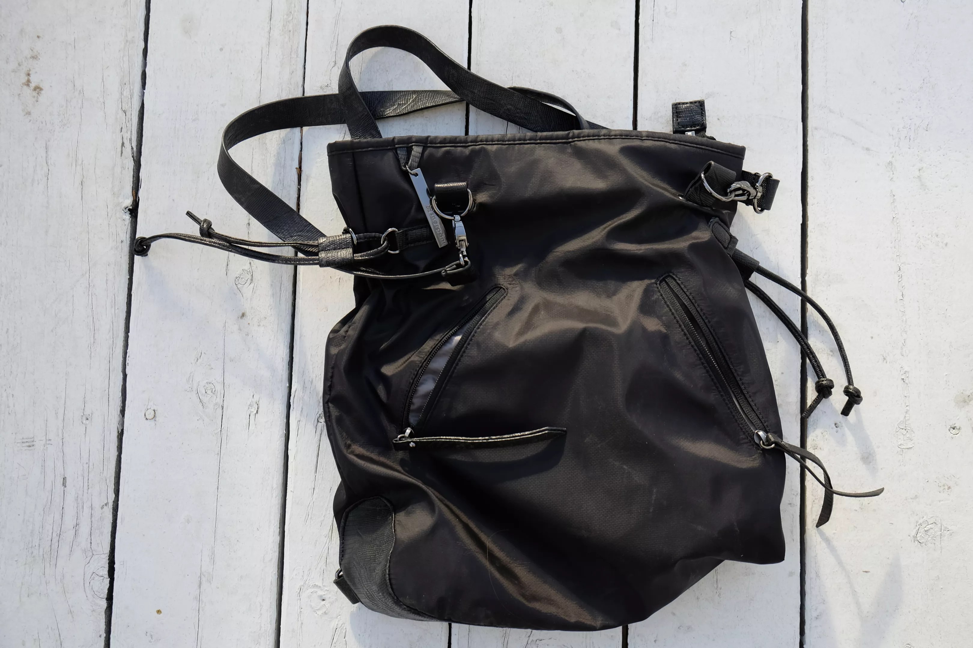 “With kids, you never know when you’re going to need two hands. There’s cross-body, but cross body still hurts my shoulder. This is the first bag I’ve found that looks good as a purse and looks good as a backpack,” she says. The straps can go over the shoulder so the bag can be carried like a purse, but they also latch at the bottom so that the bag can be worn on your back.