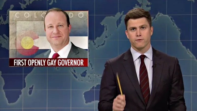 Colin Jost earns laughs from Jared Polis’s election and the term “openly gay.”